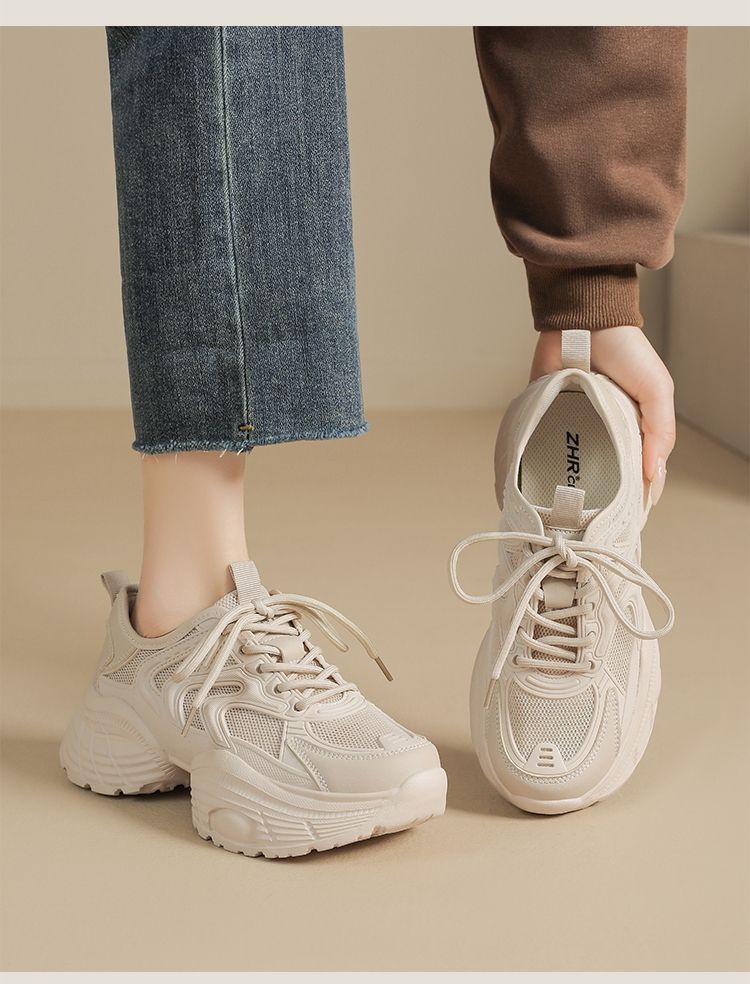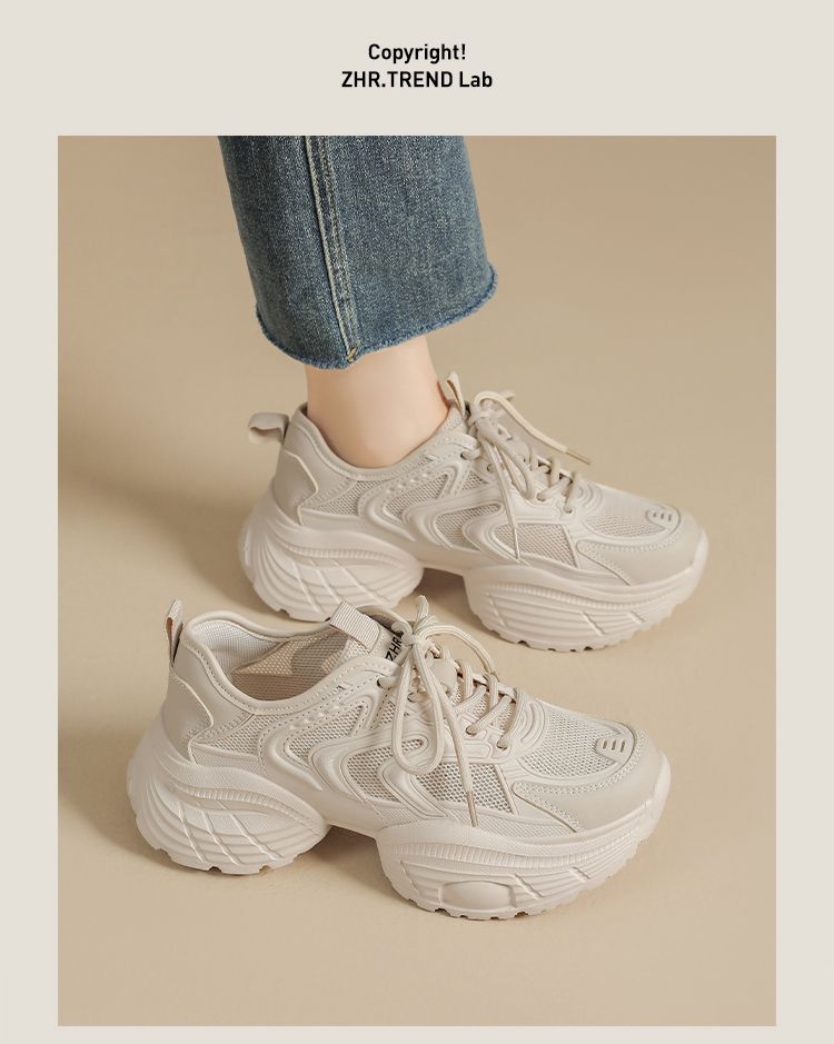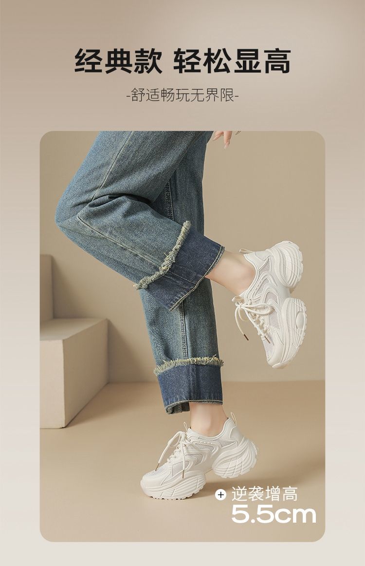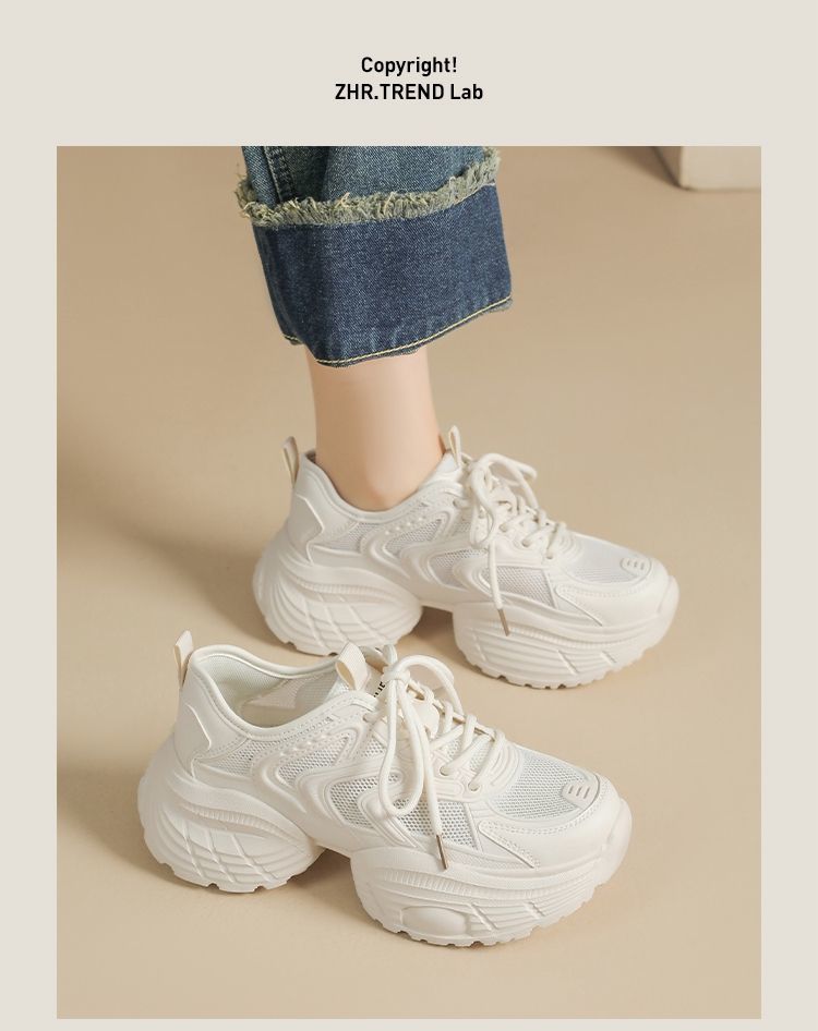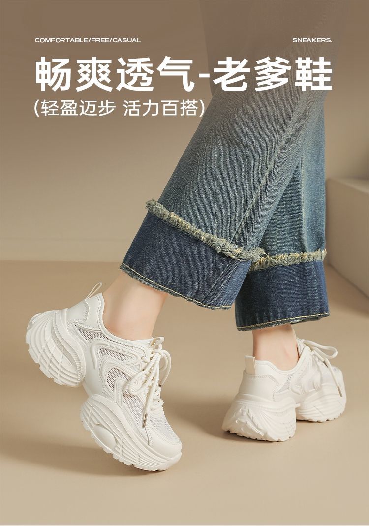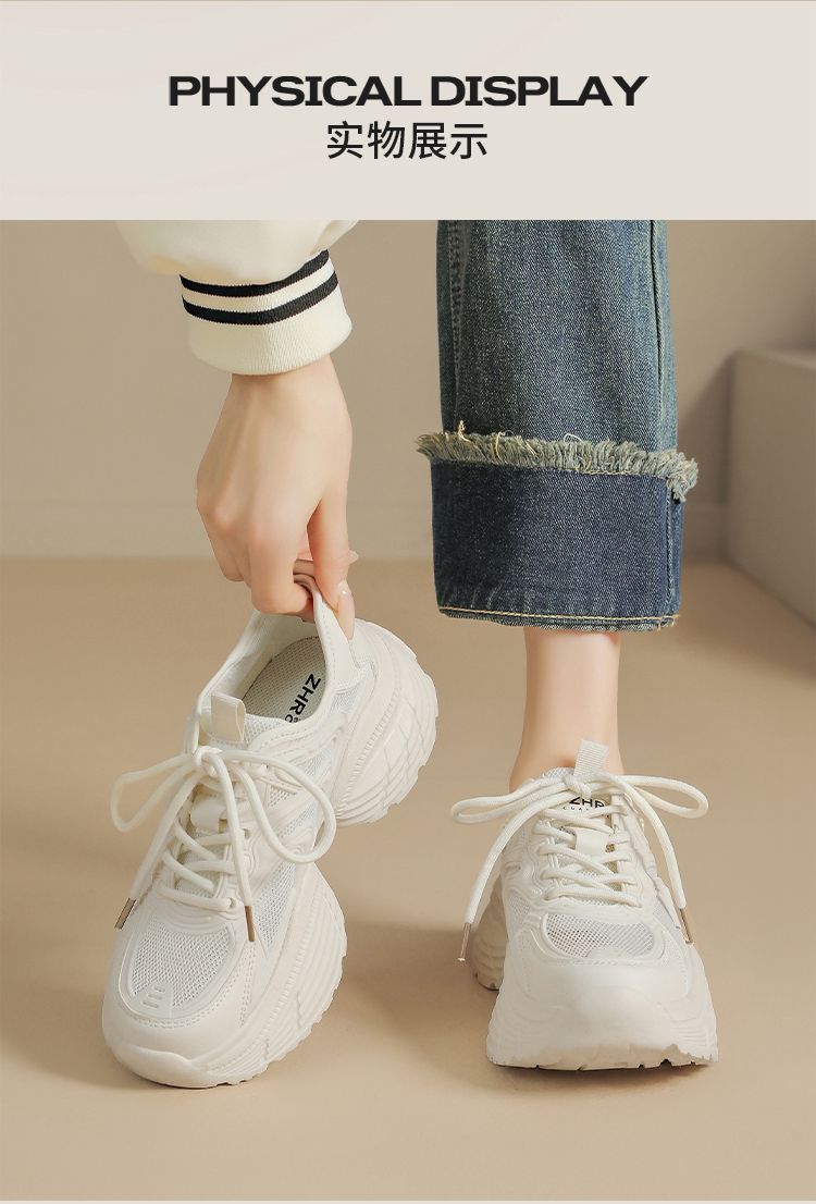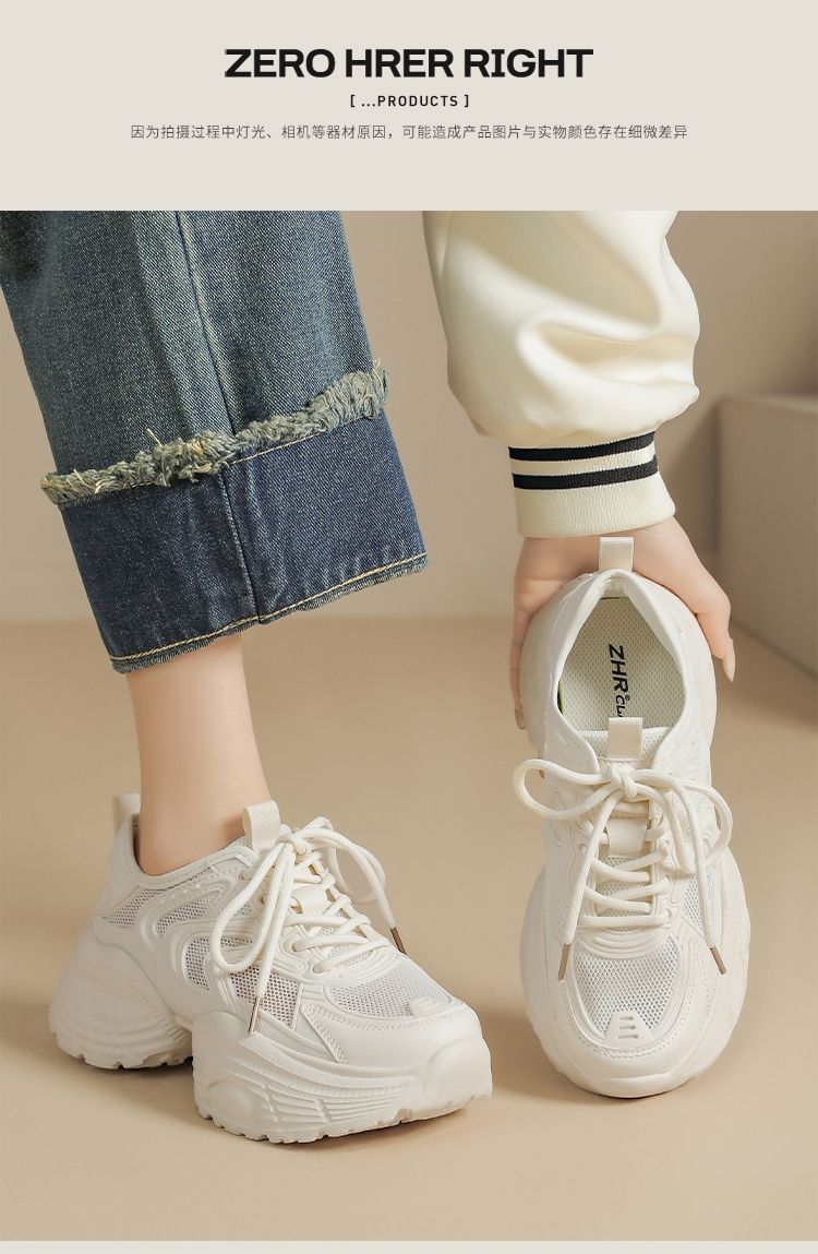 ZHR【5.5cm】网面透气老爹鞋女厚底增高运动女鞋轻便超软小白鞋女