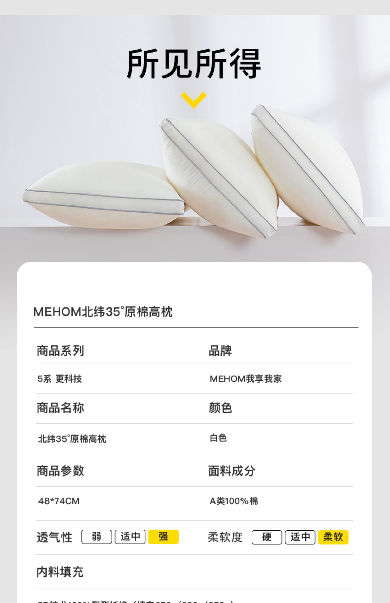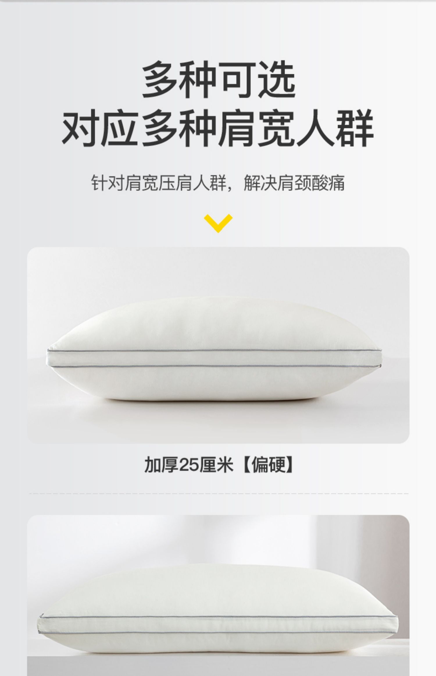 高枕头加厚加高酒店单人枕芯一对整头家用高枕男不塌陷不变形硬枕