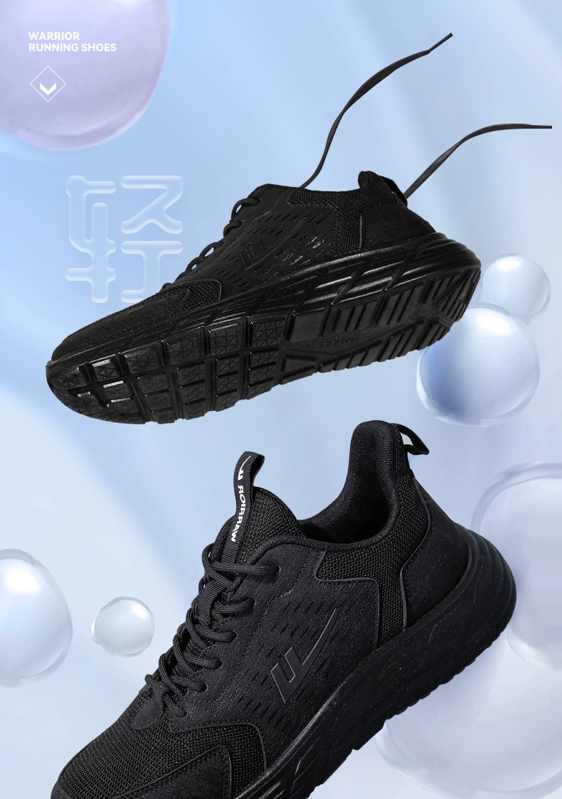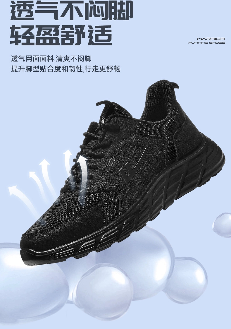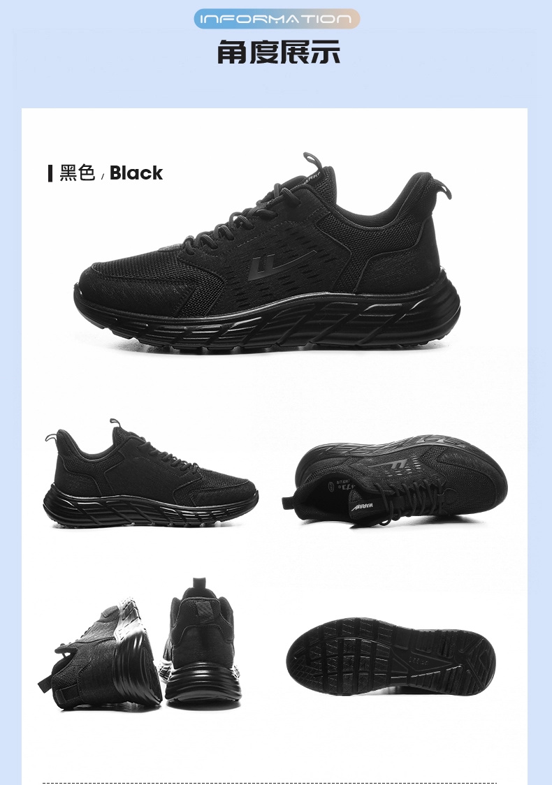 回力春季新款男鞋黑色运动鞋男款男士爆款软底休闲纯黑跑步鞋子WXY(JS)-0721