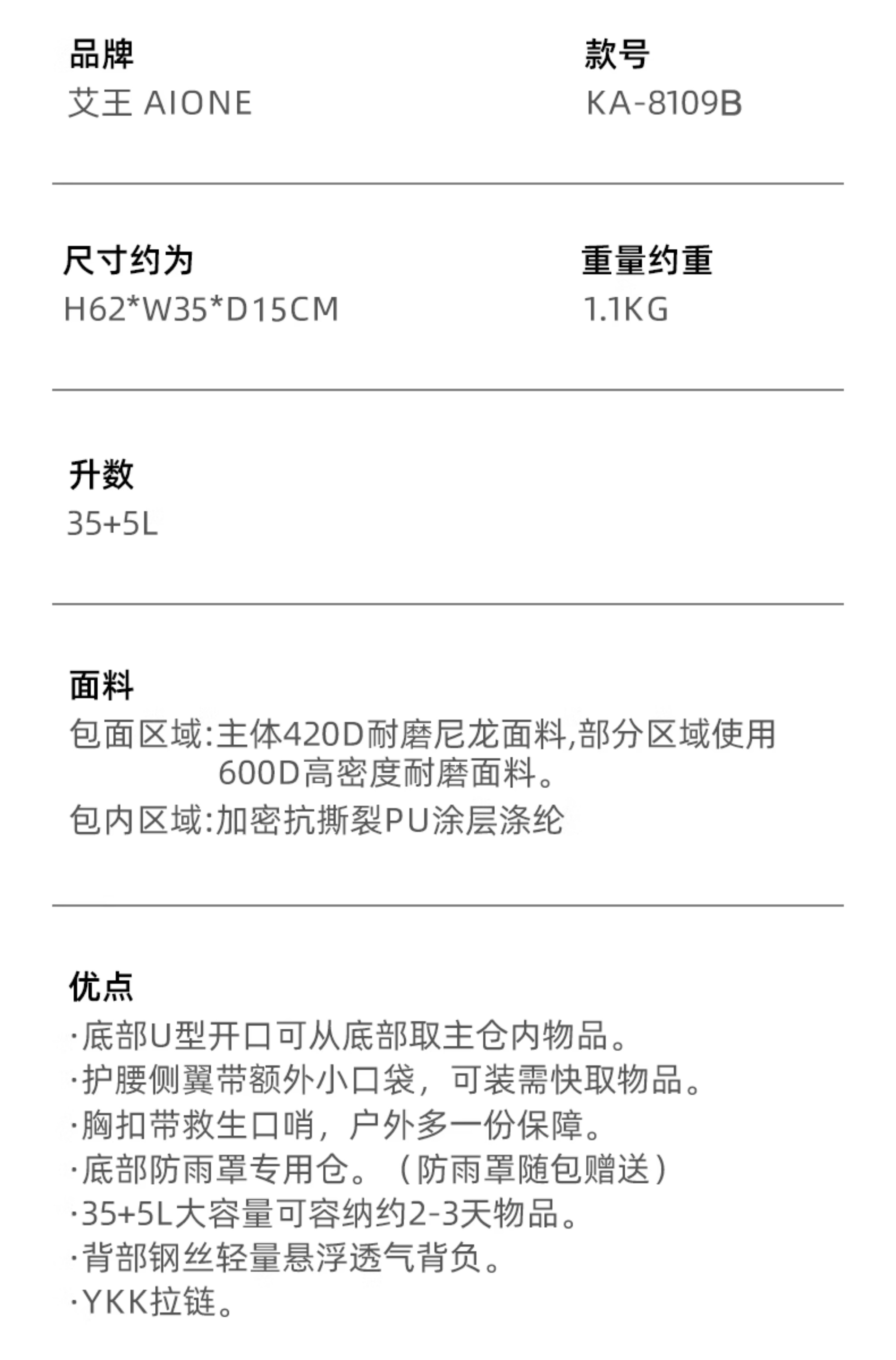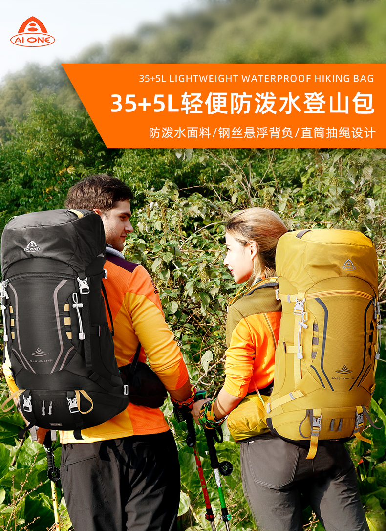 艾王登山包透气悬浮背负系统40升双肩包男款防泼水耐磨短期旅行包