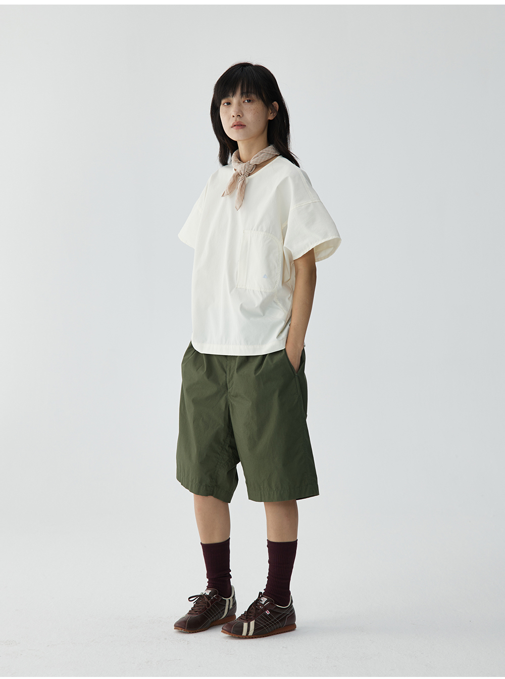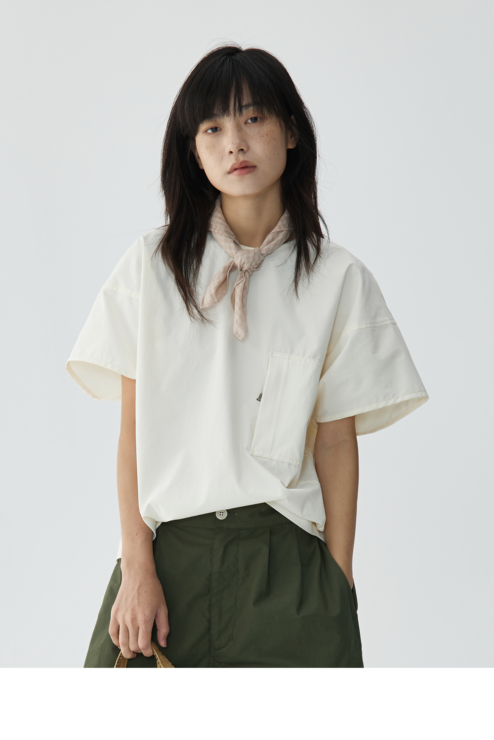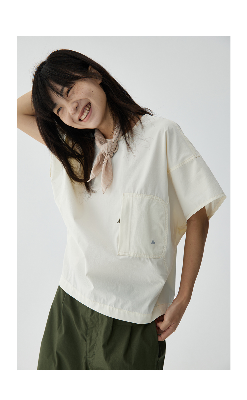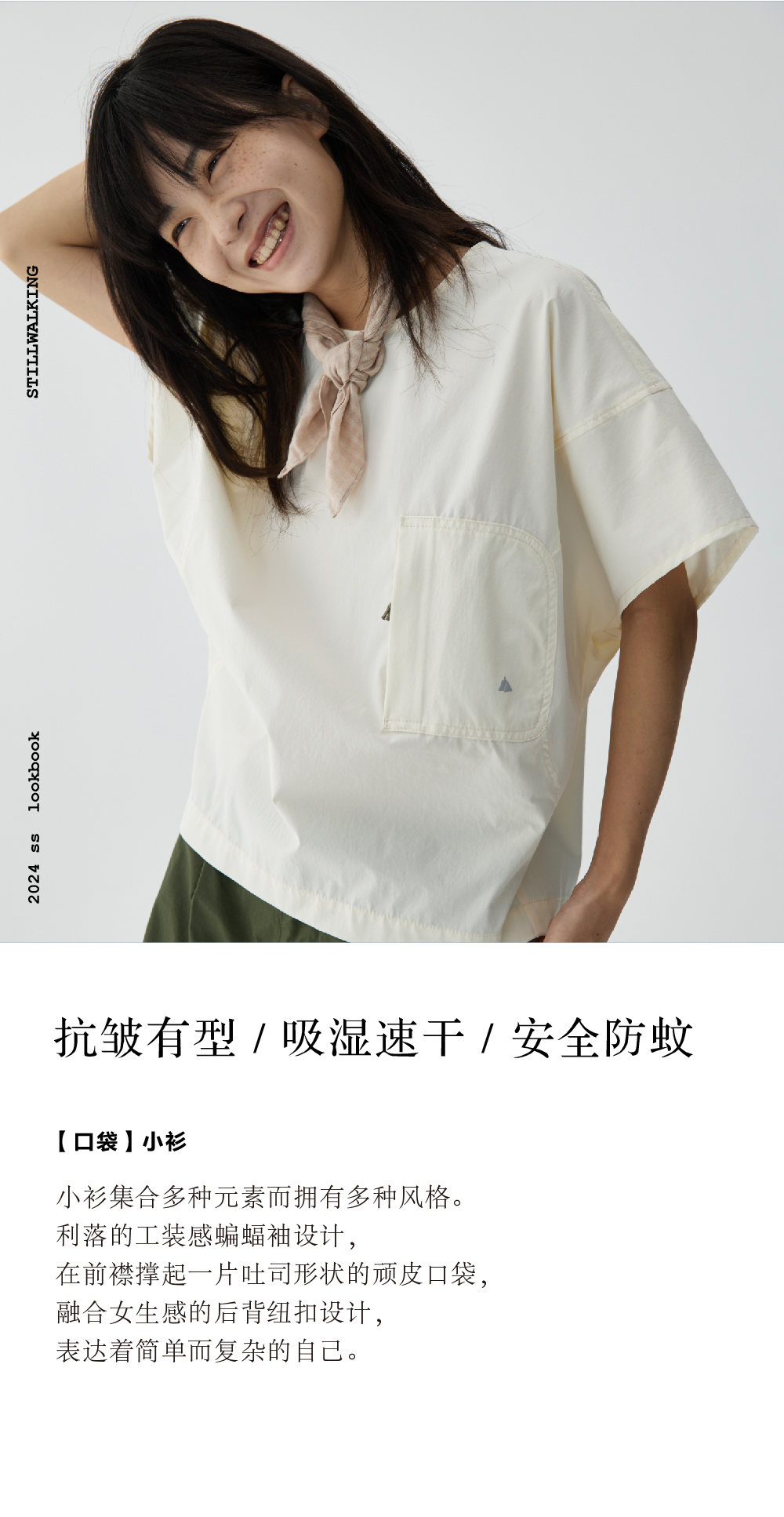 步履不停/4B11190C/日系小众仿棉感圆领砍袖衬衫