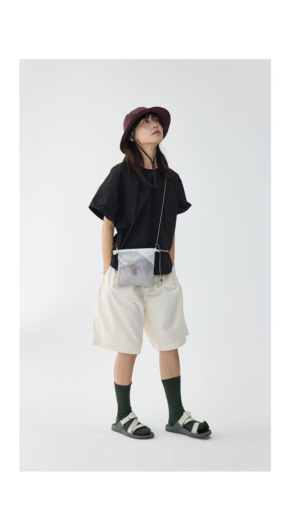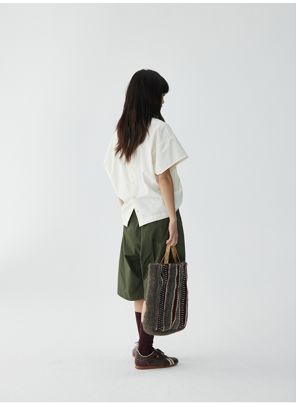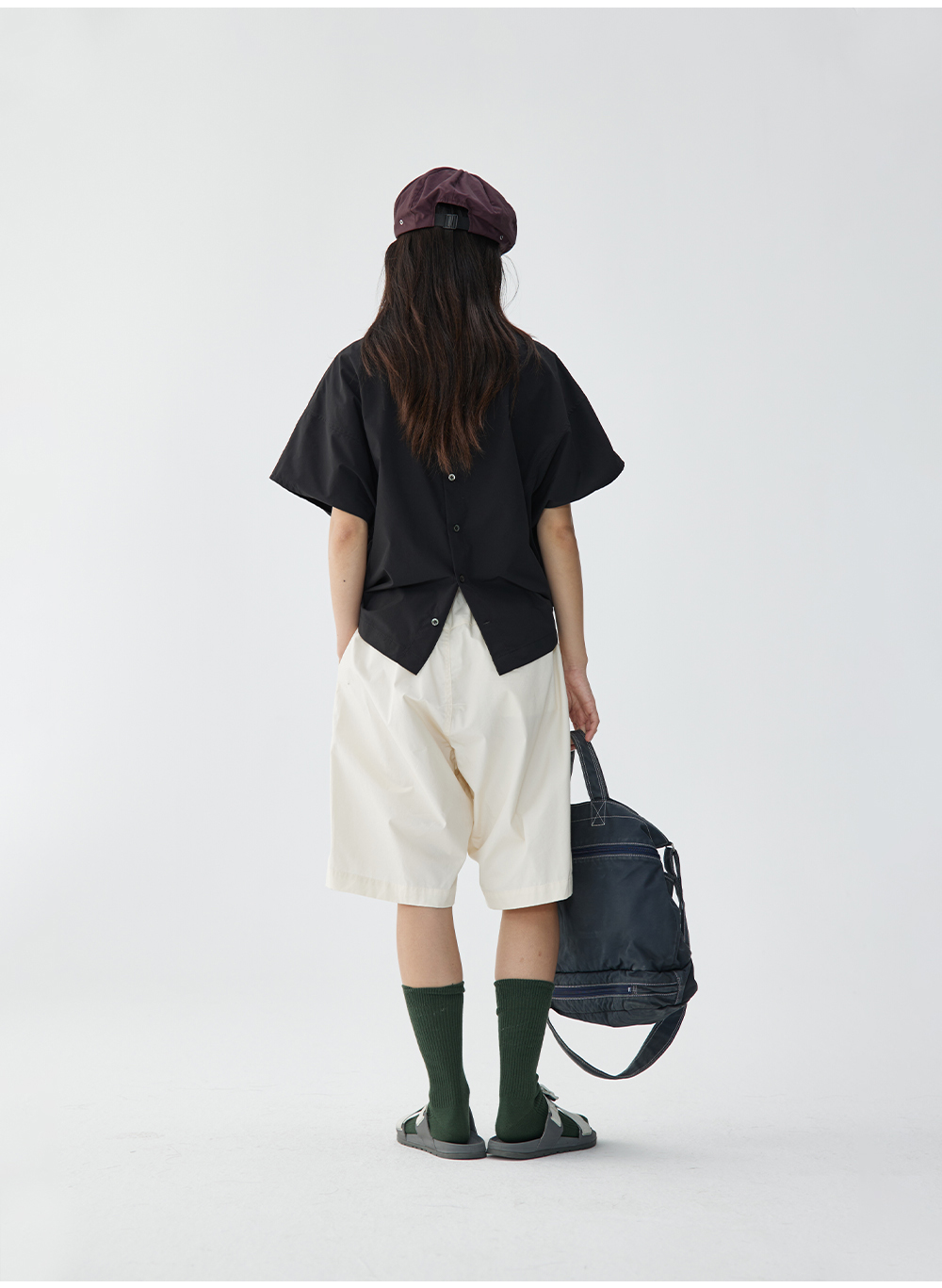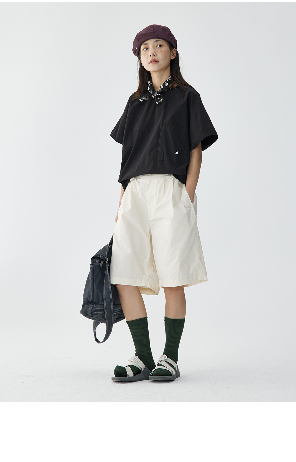 步履不停/4B11190C/日系小众仿棉感圆领砍袖衬衫