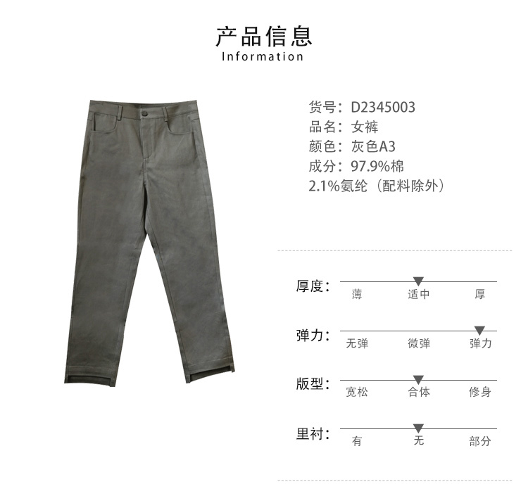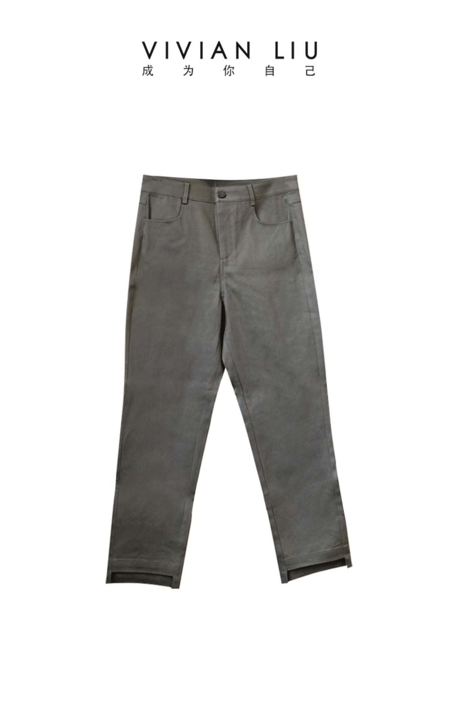 VIVIAN LIU薇薇安刘D2345003秋女装新款斜插兜裤不规则脚口长裤