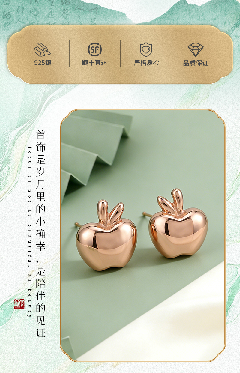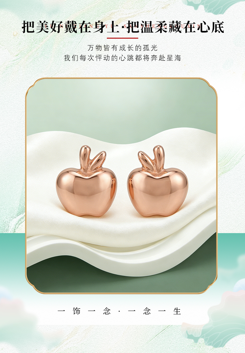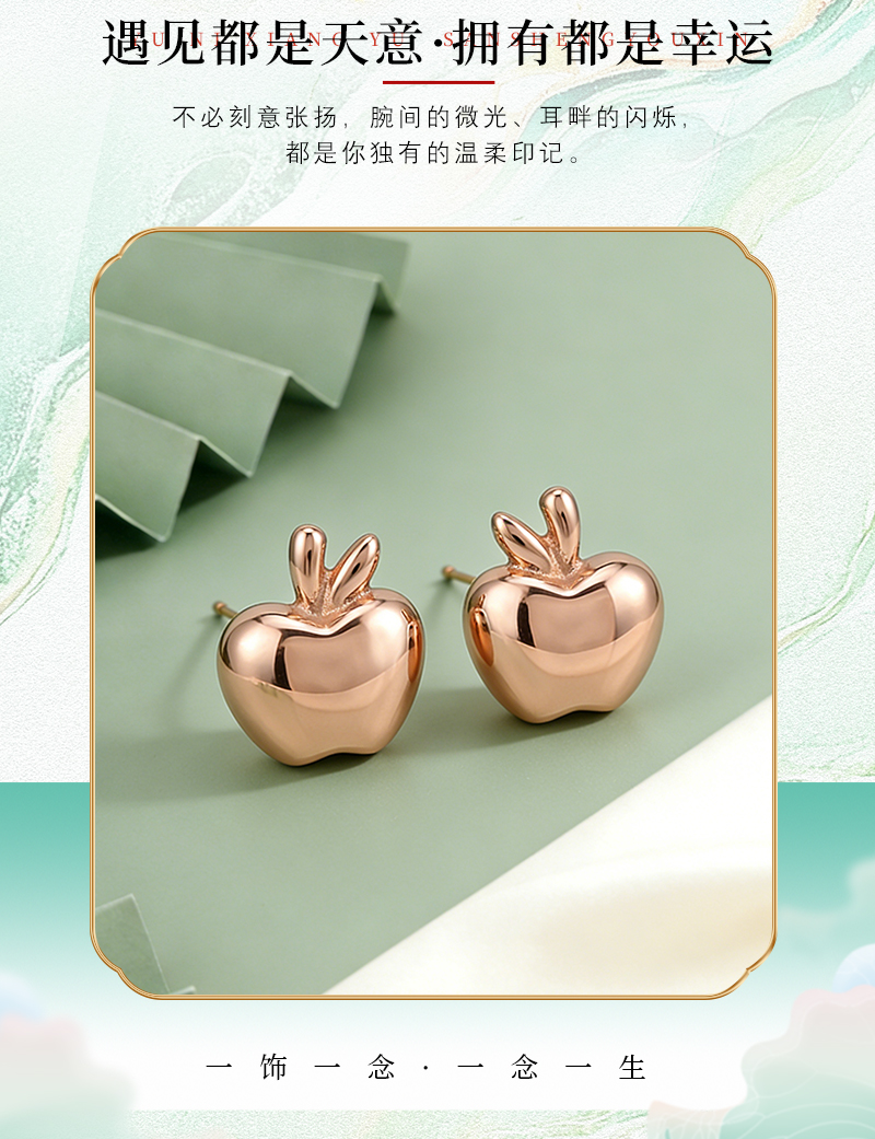 【宏艺珠宝】迷你·青苹奶金·银s925耳饰