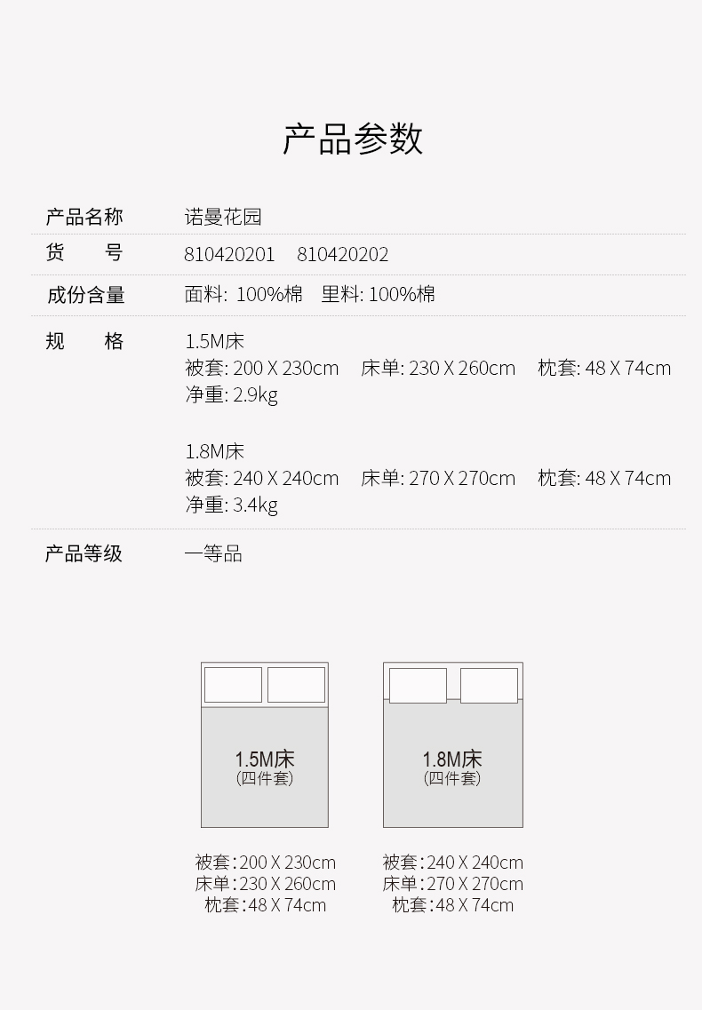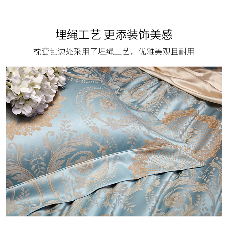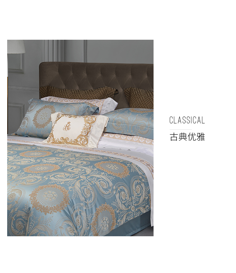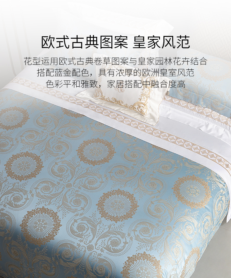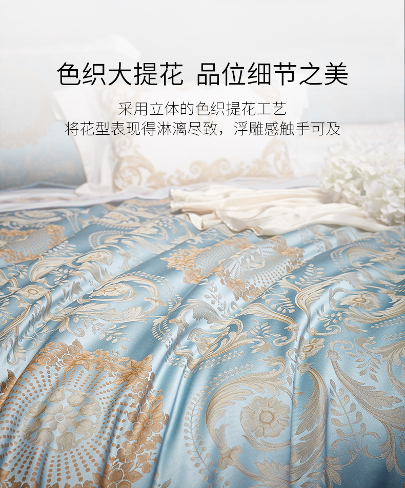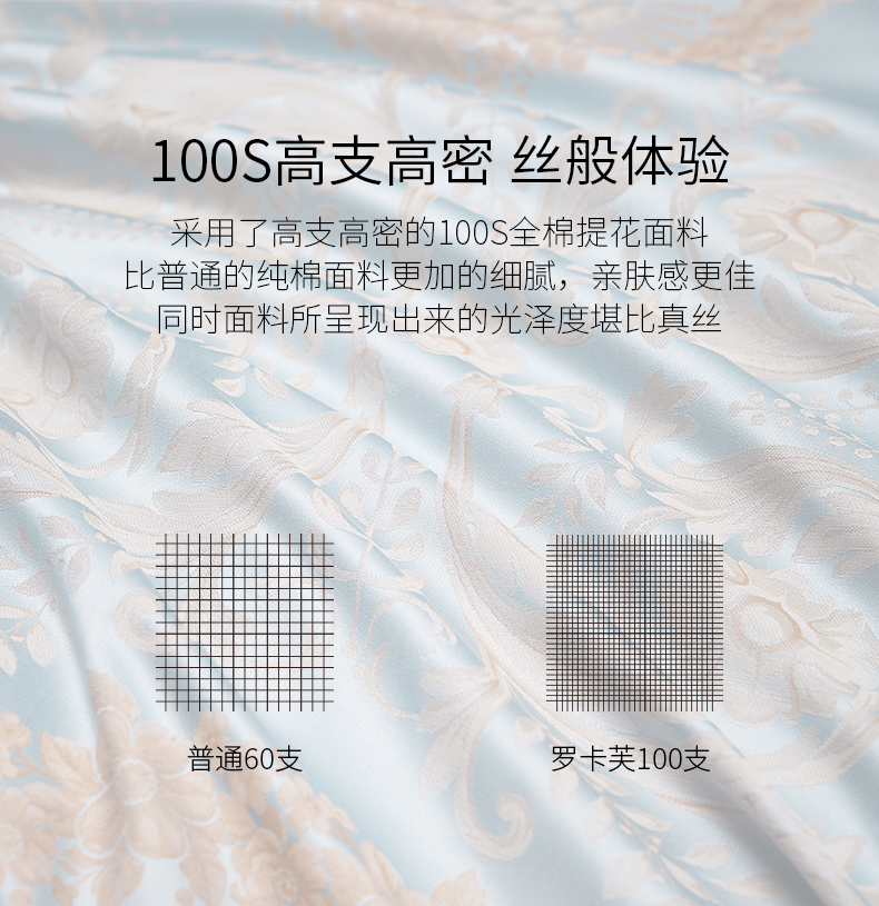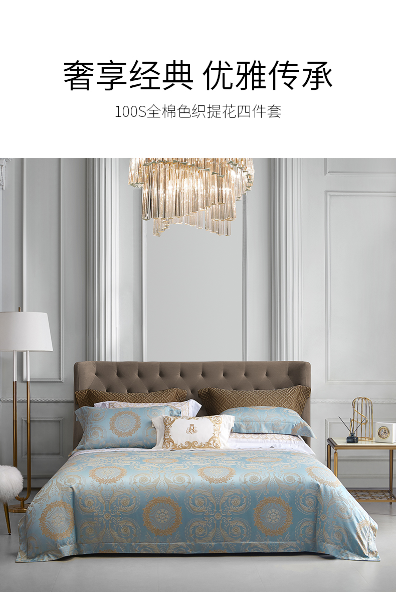 罗卡芙100支全棉色织大提花新疆长绒棉四件套诺曼花园