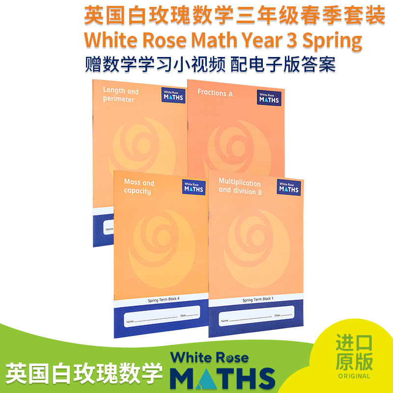 预售 【中商原版】英国白玫瑰数学练习册三年级春季套装4册 White Rose Math Year 3 Spring Block 1-4 小学分数乘除法学习英文原版