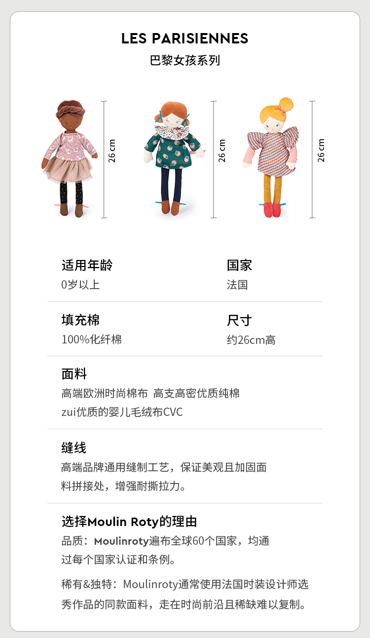 Moulin Roty 蔷薇小姐玩偶 法式玩偶 适合年龄1岁+ 巴黎女孩系列 642538