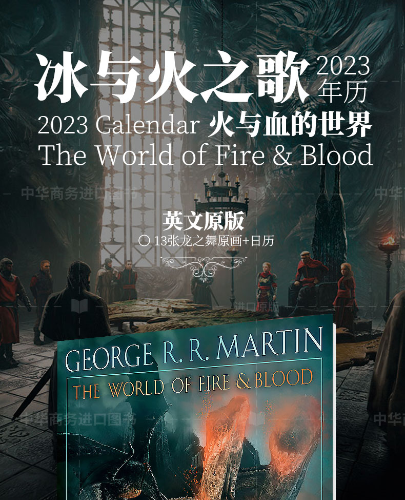 【中商原版】火与血的世界2023年历 冰与火之歌 权力游戏The World of Fire & Blood 2023 Calendar 英文原版 George R R Martin