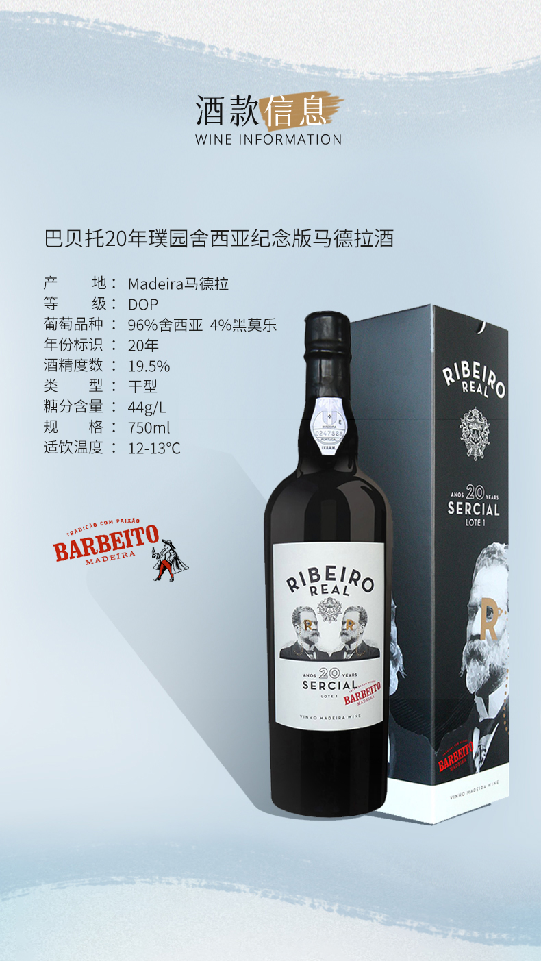巴贝托20年璞园舍西亚纪念版马德拉酒 750ml【特别供】