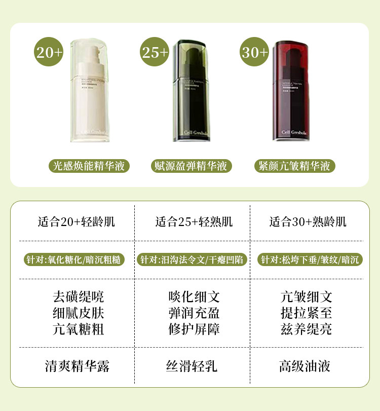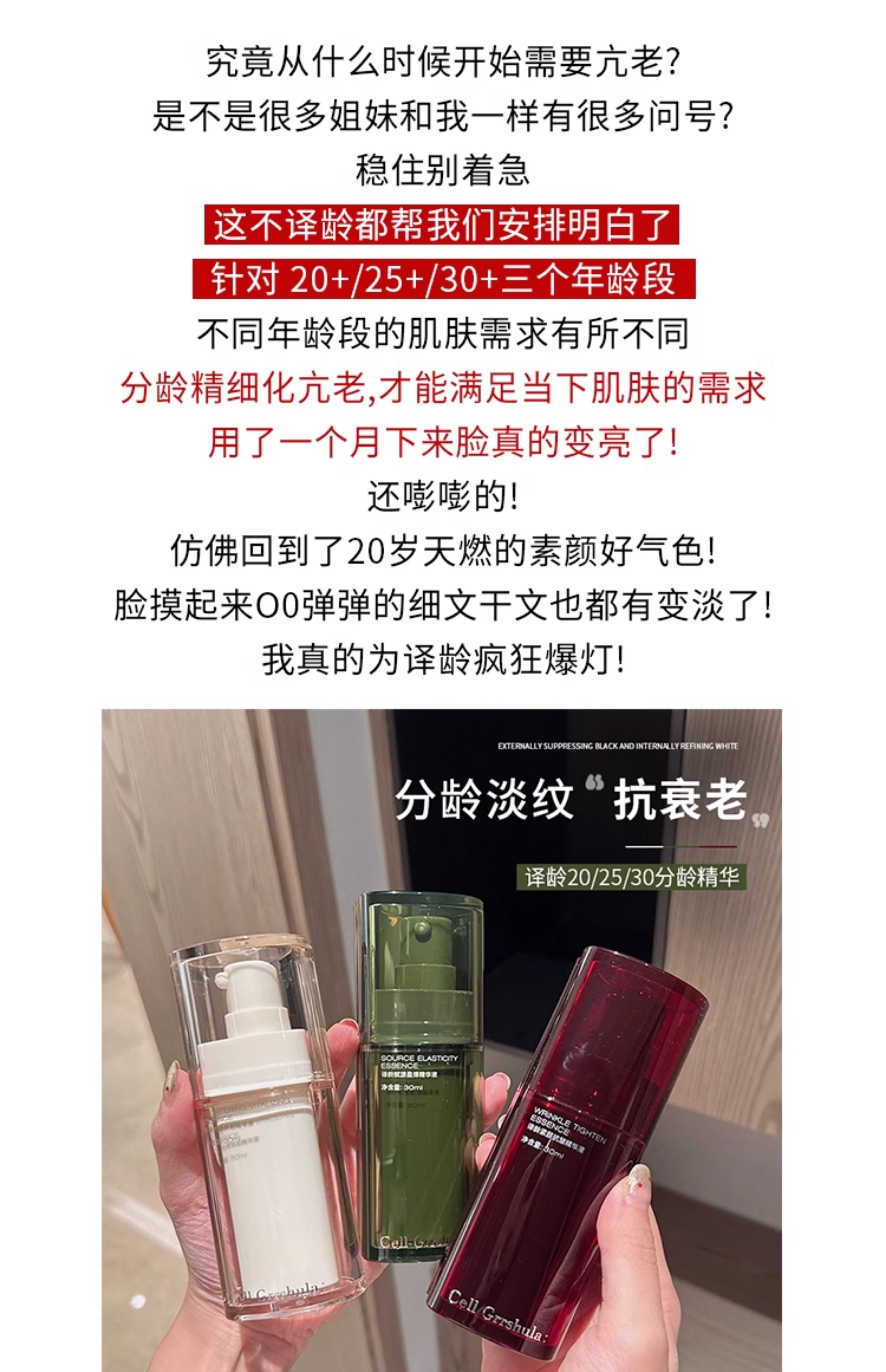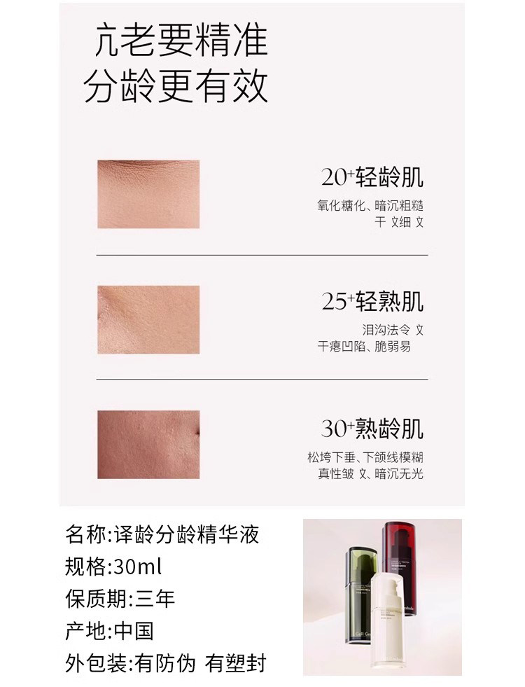 译龄精华液20+/25+/30+紧致早晚双抗a醇修护VC烟酰胺护肤修护抗皱补水去黄提亮分龄精华