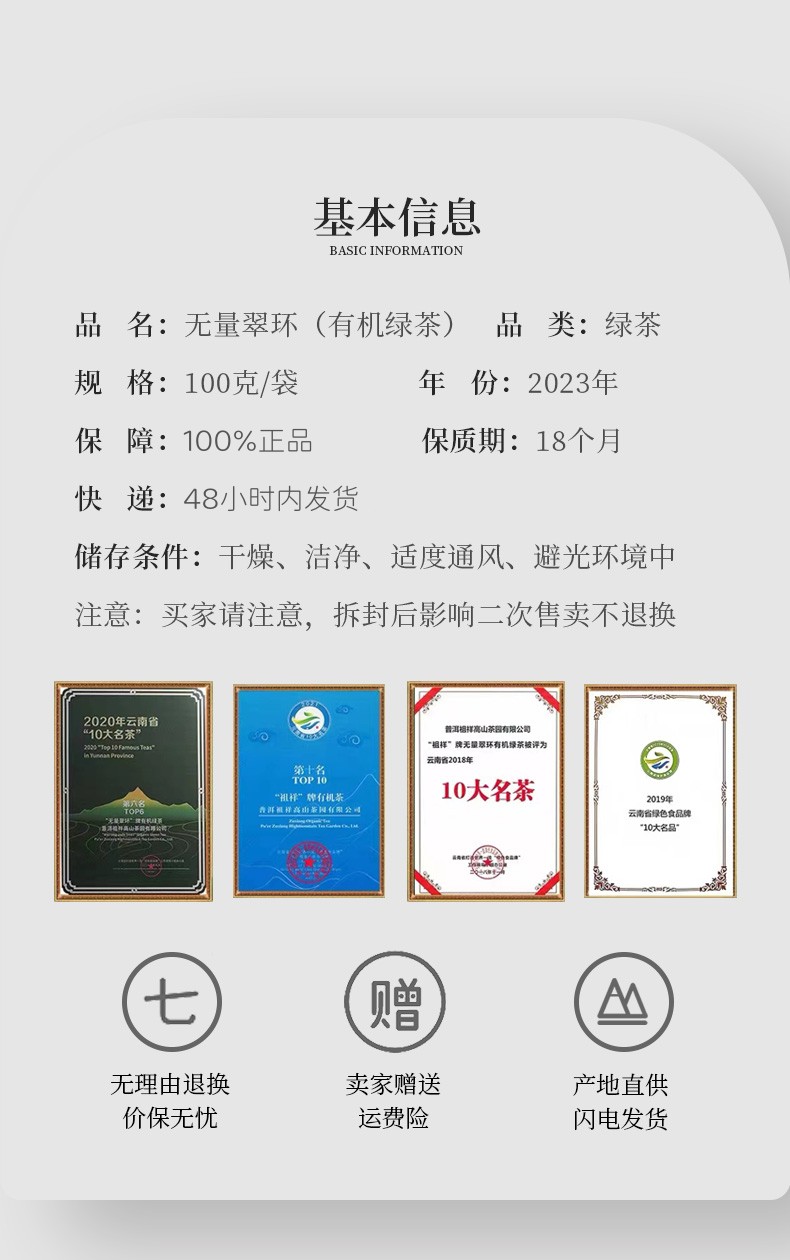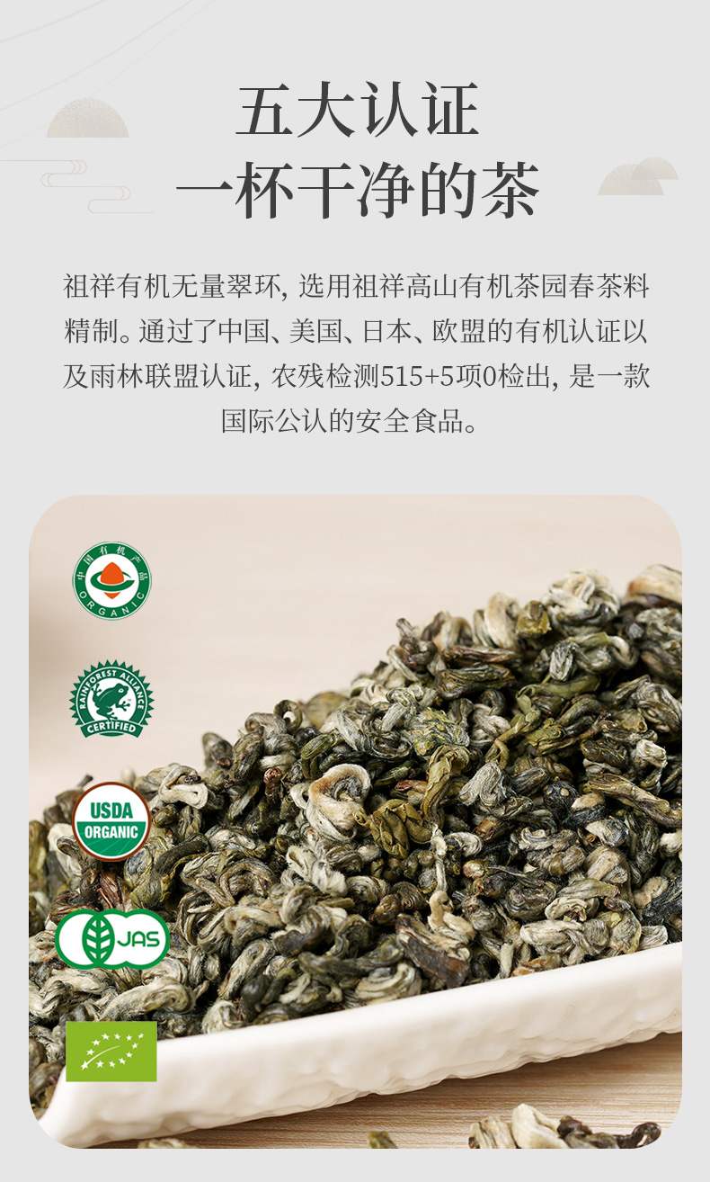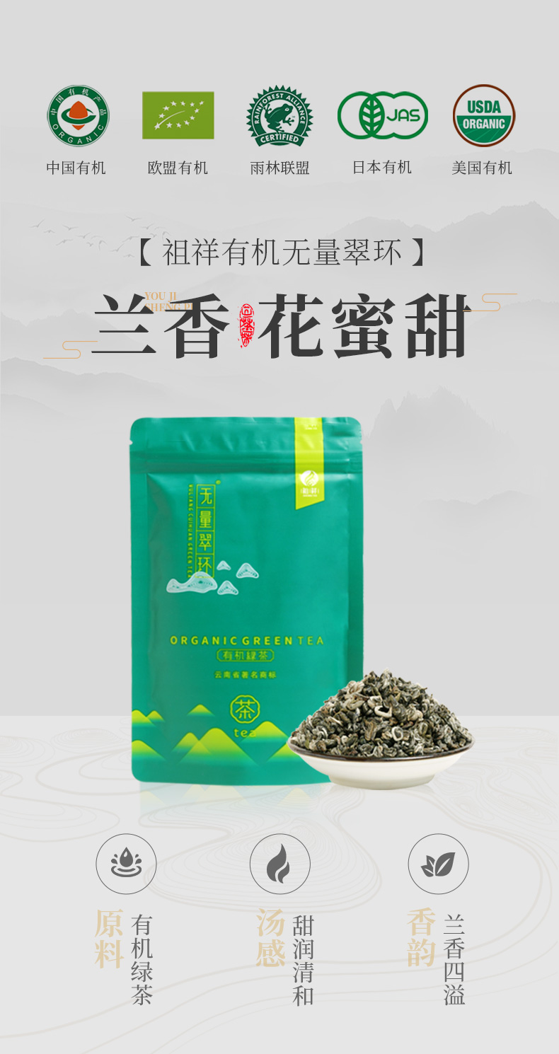 有机绿茶无量翠环100克 滇绿