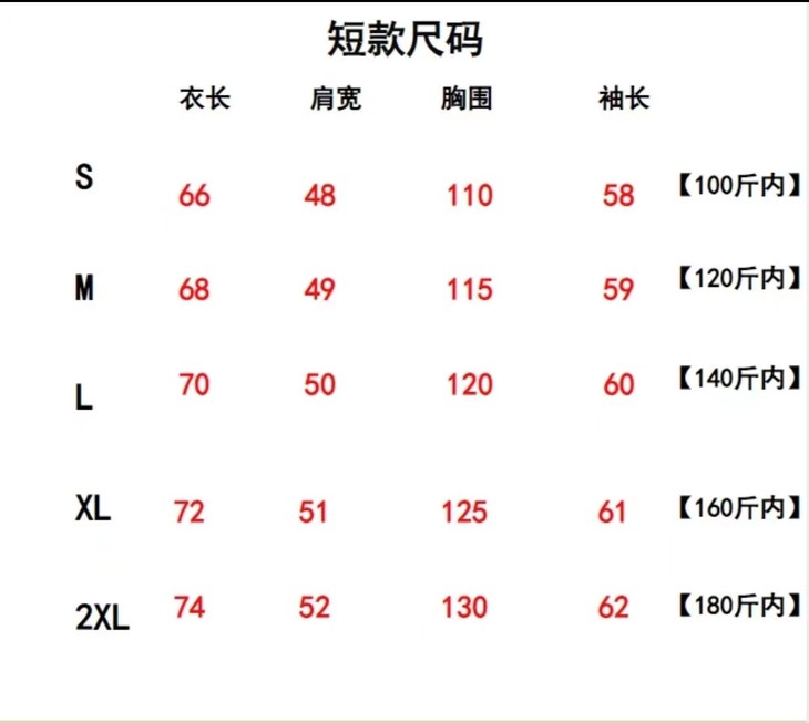 长款:S(355g) M(375g)L(395g) XL(415g) 2XL(435g)±10g