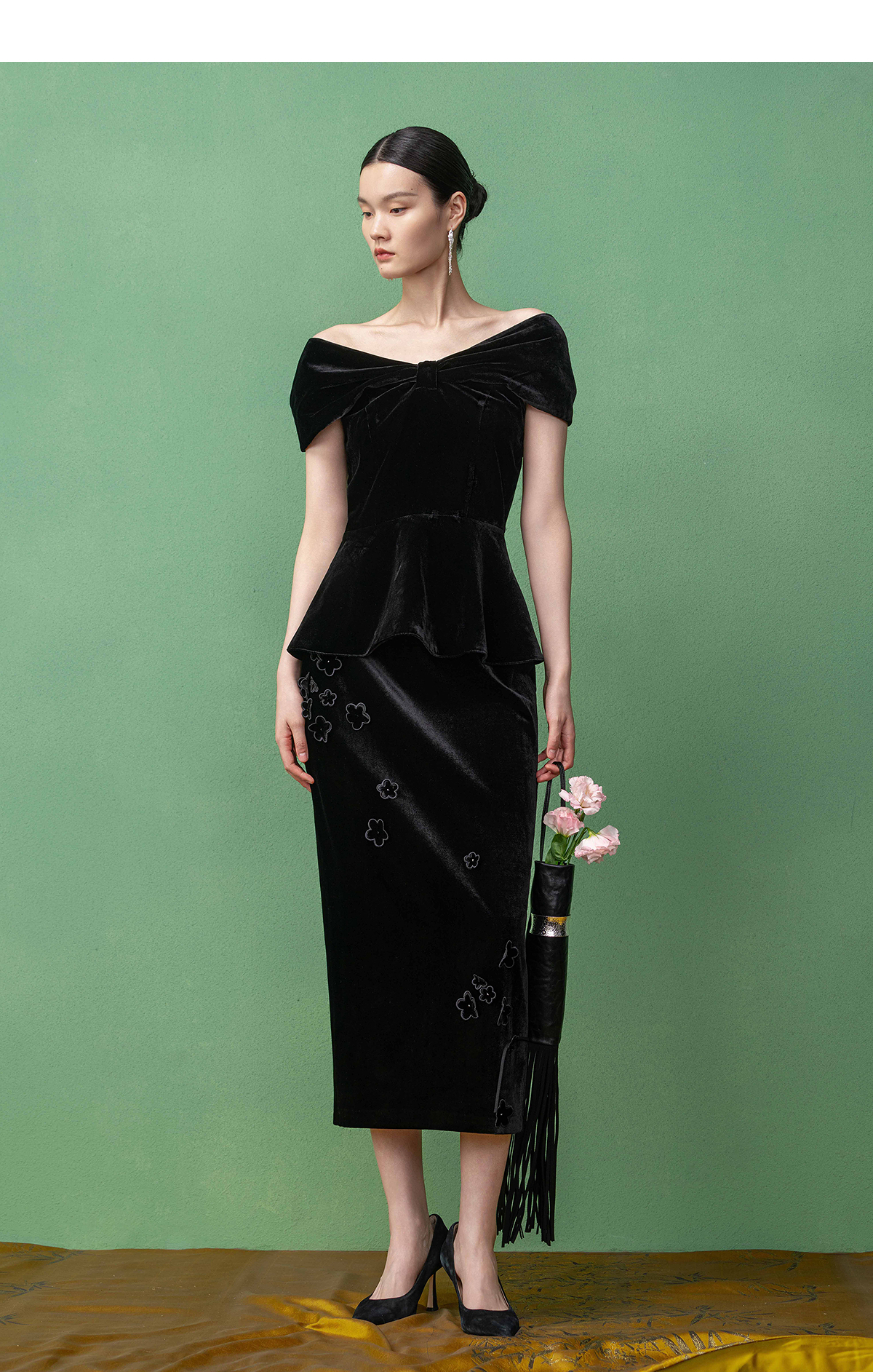 【林栖设计小店】真丝丝绒衬衣蝴蝶结收腰2025秋季新款礼服女1953069