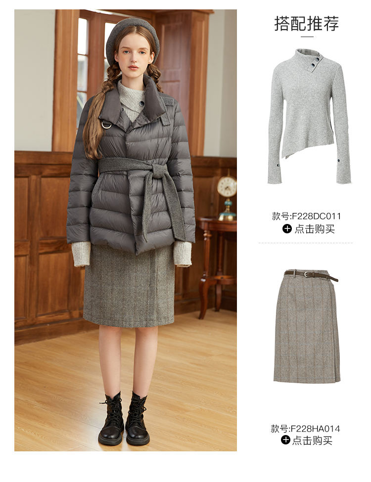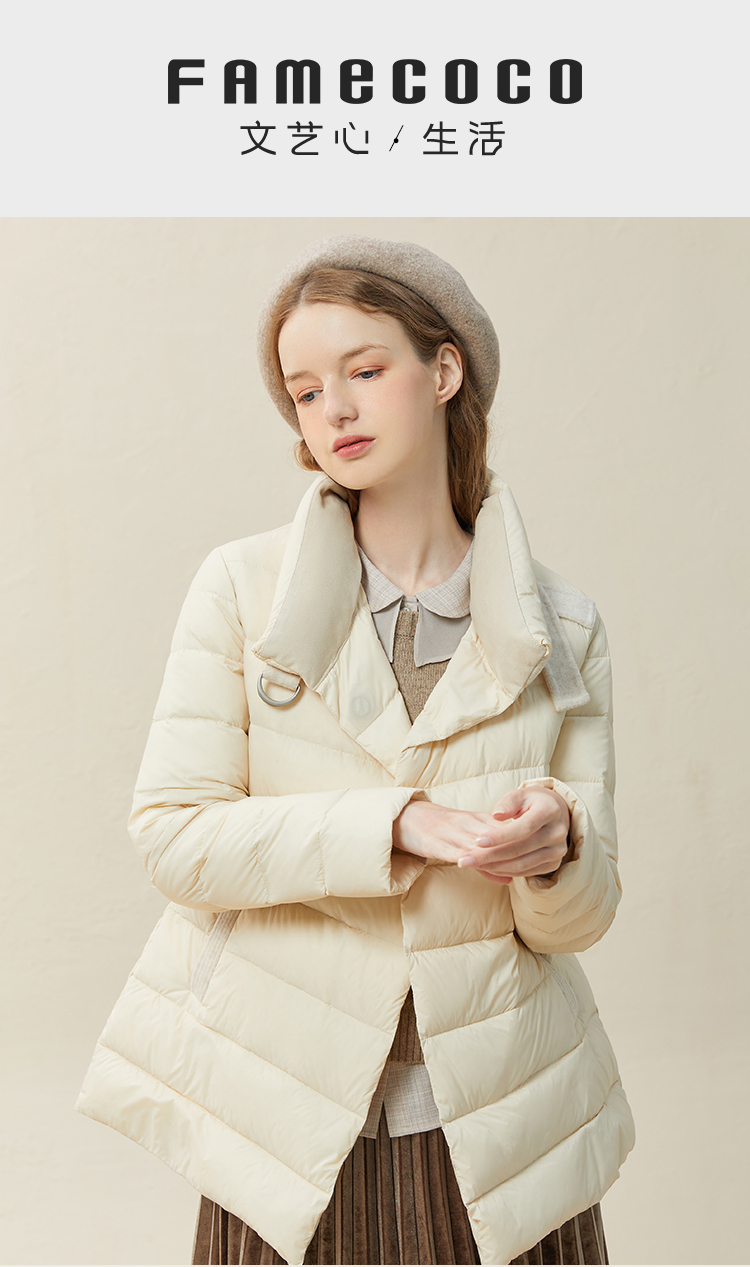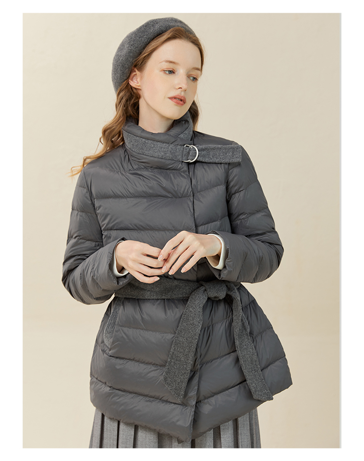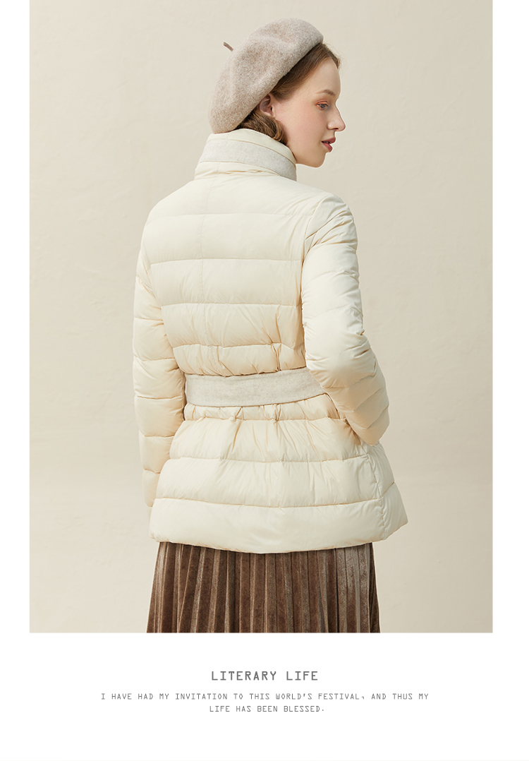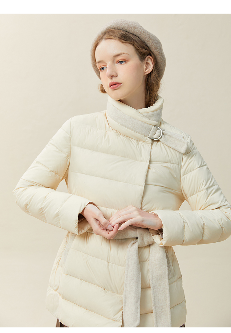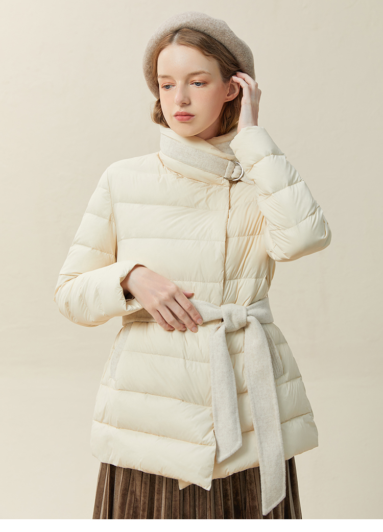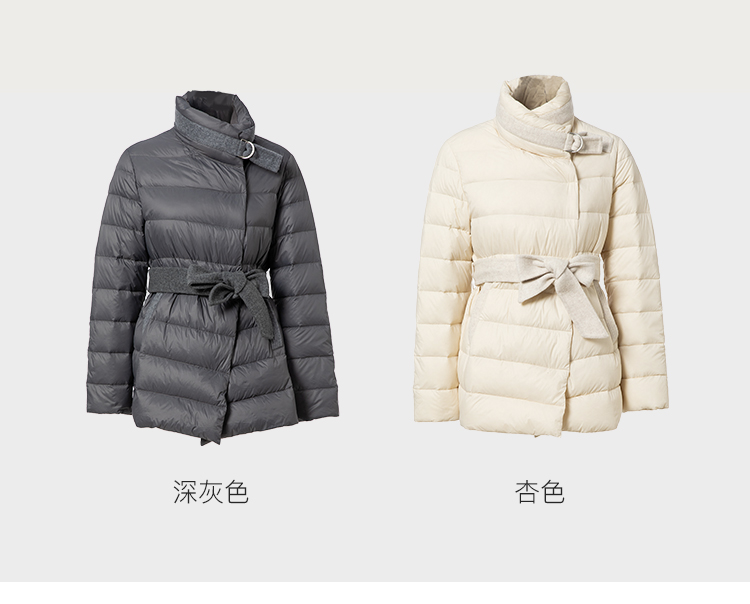 famecoco范可儿羽绒服女短款立领轻薄款冬季收腰腰带外套F228AM007