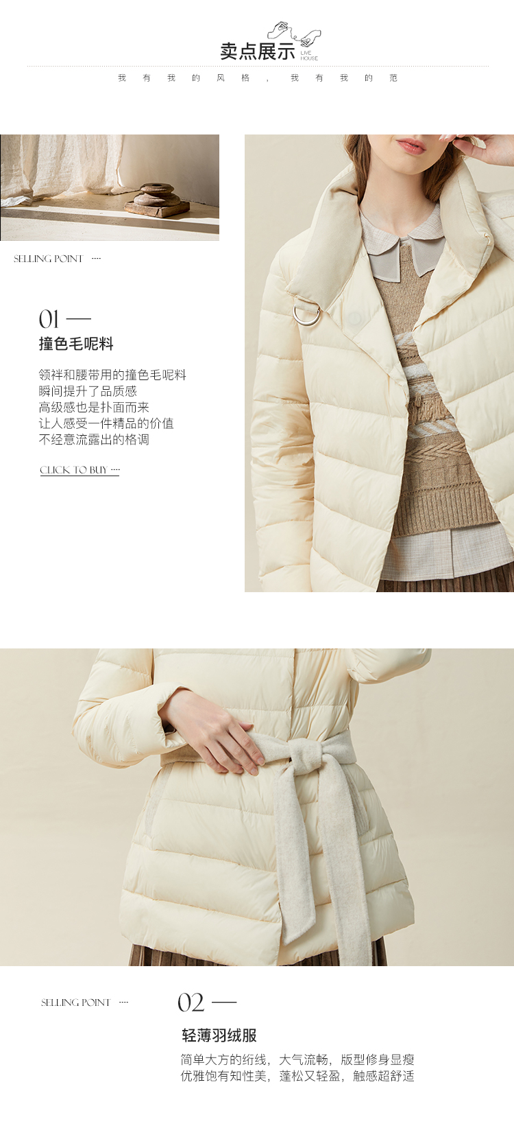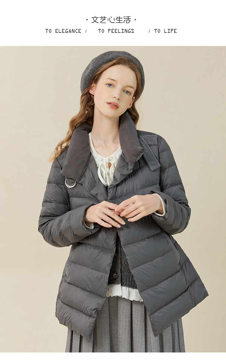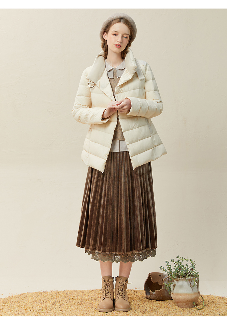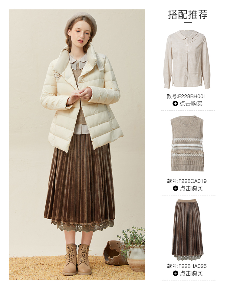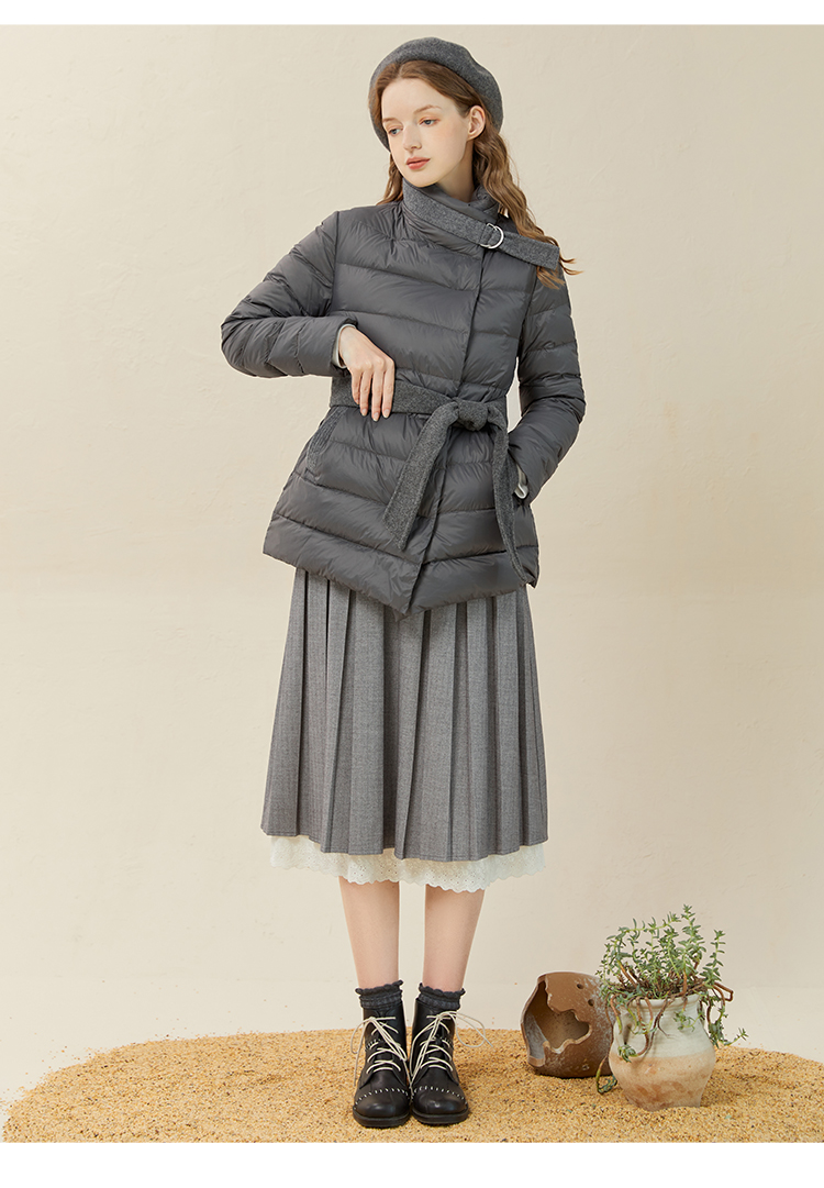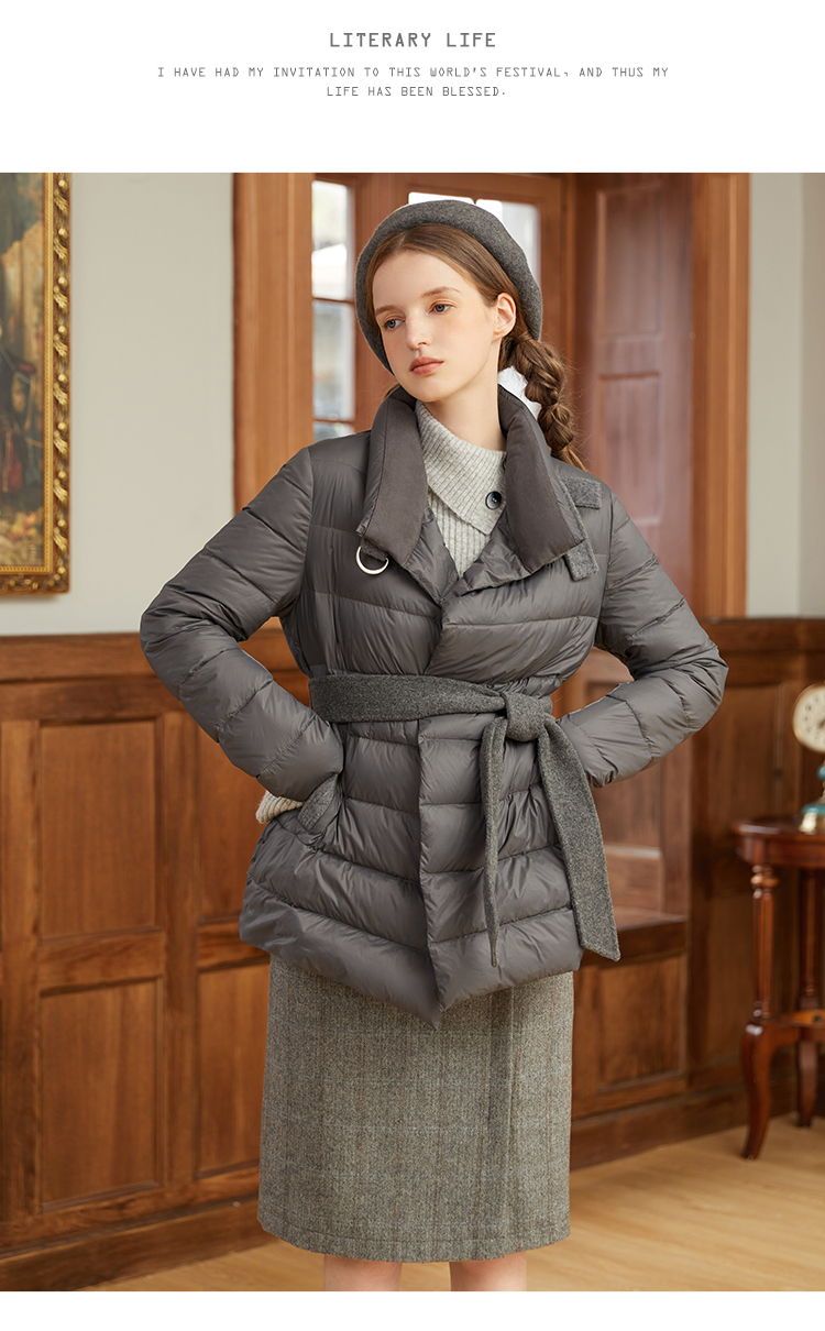 famecoco范可儿羽绒服女短款立领轻薄款冬季收腰腰带外套F228AM007