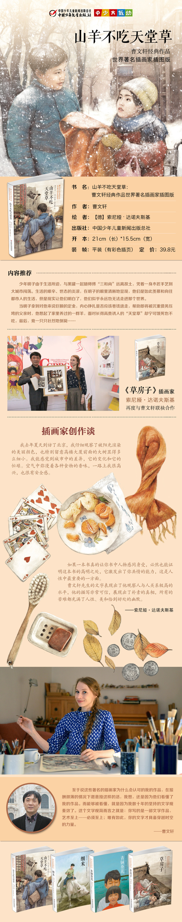 3.《草房子》插画家索尼娅·达诺夫斯基再度与曹文轩联袂合作,唯美画风感动读者。