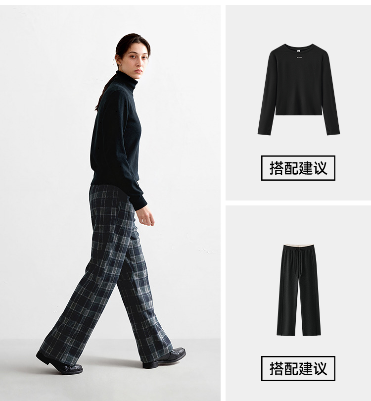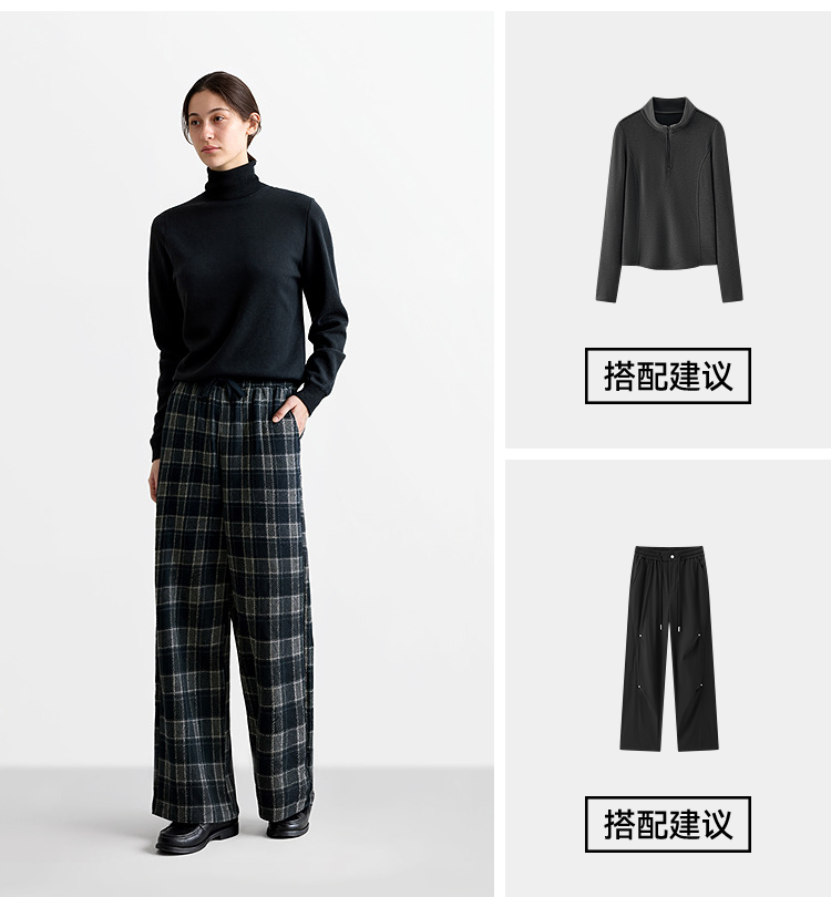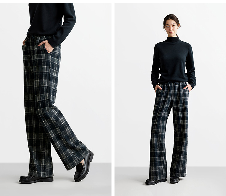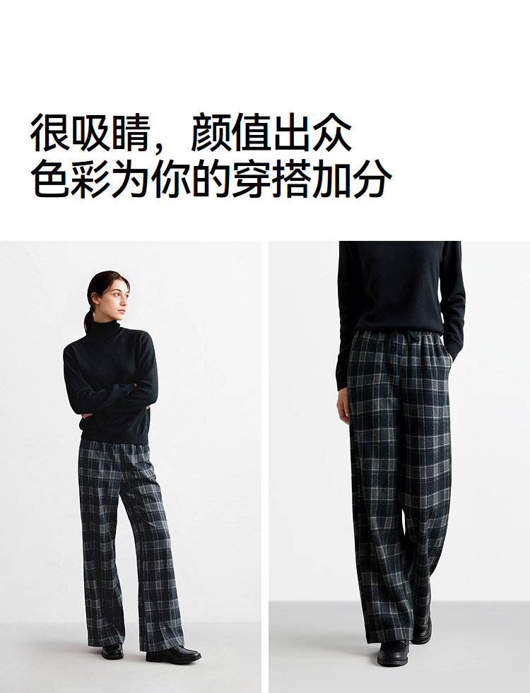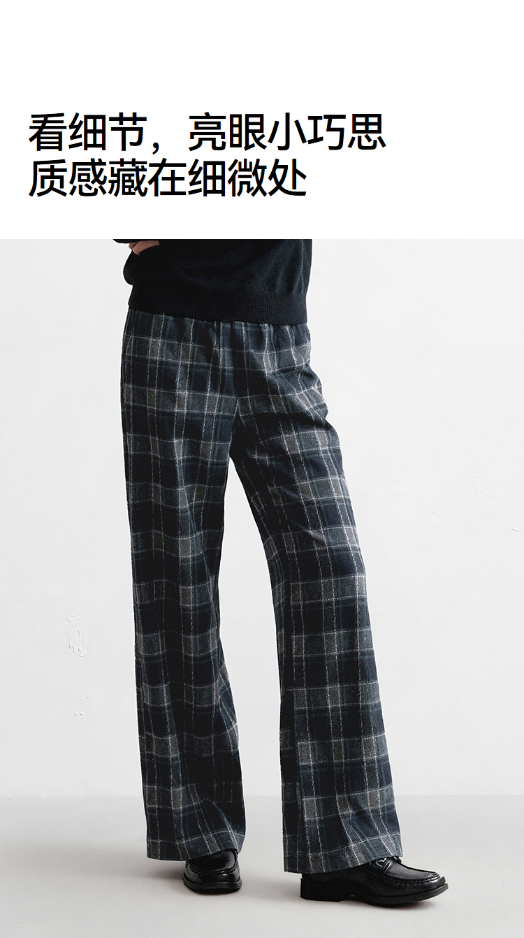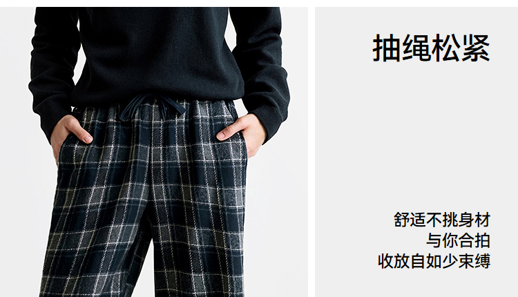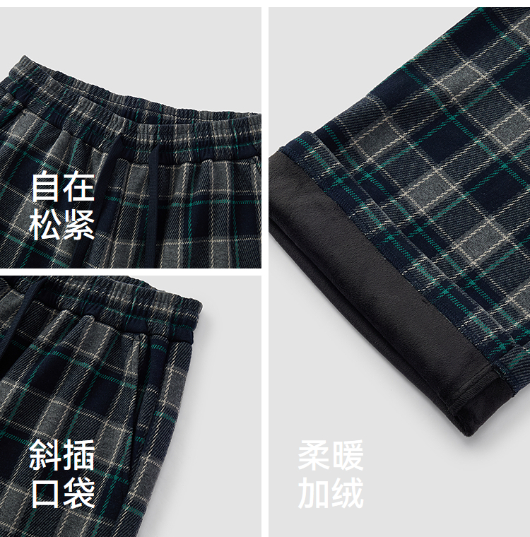 森马休闲裤女冬格子加绒长裤宽松2025新款盐系慵懒复古潮流阔腿裤