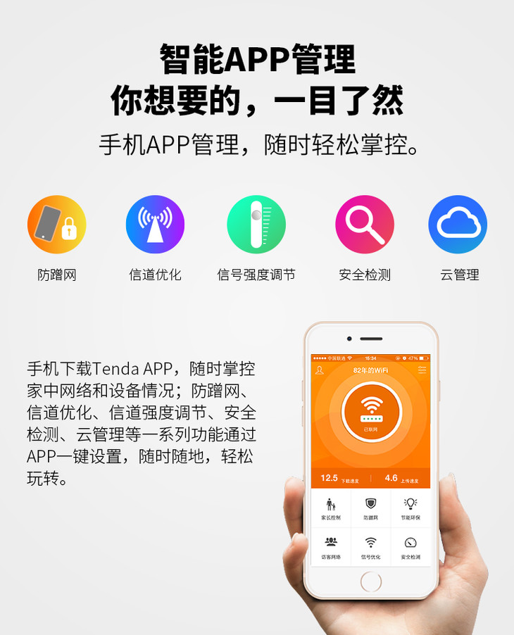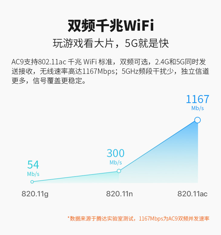 腾达(Tenda)AC9 双千兆路由器 有线无线全千兆 5G双频 智能路由 同轴增强天线WiFi穿墙