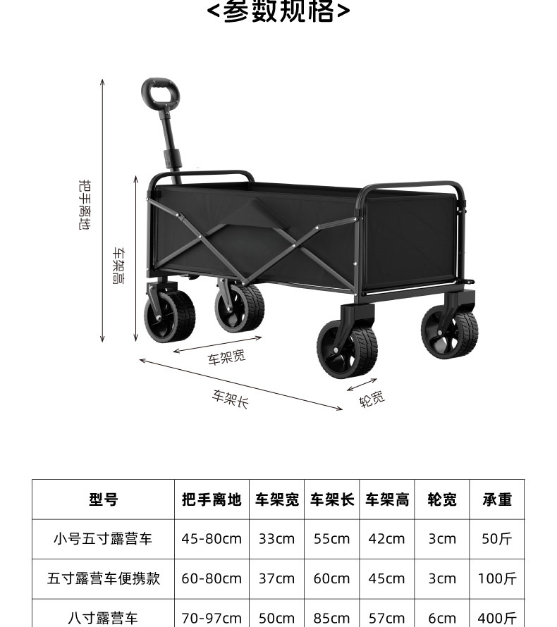 【承重力强❗️出行方便】露营车户外可折叠推车超大营地车野餐车拖车野营手拉杆摆摊小推车。jd