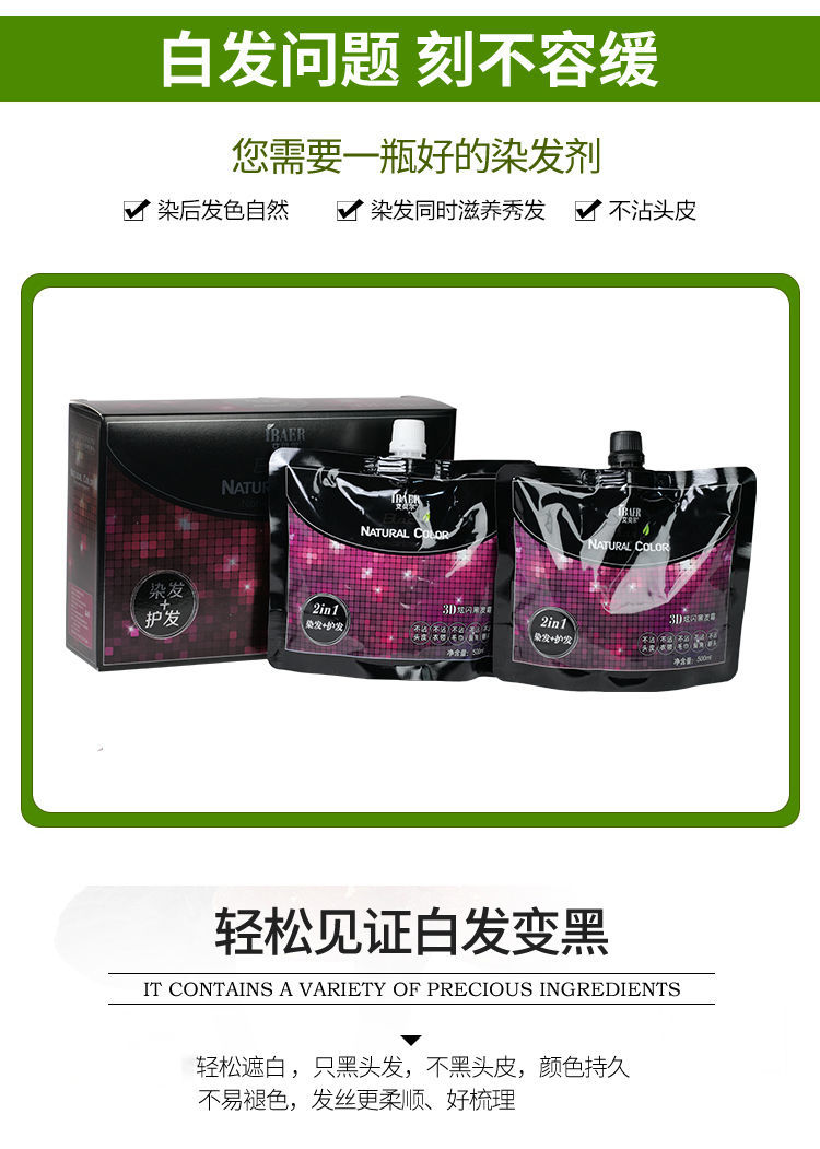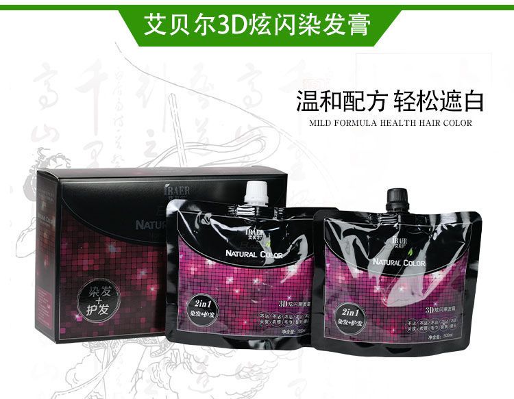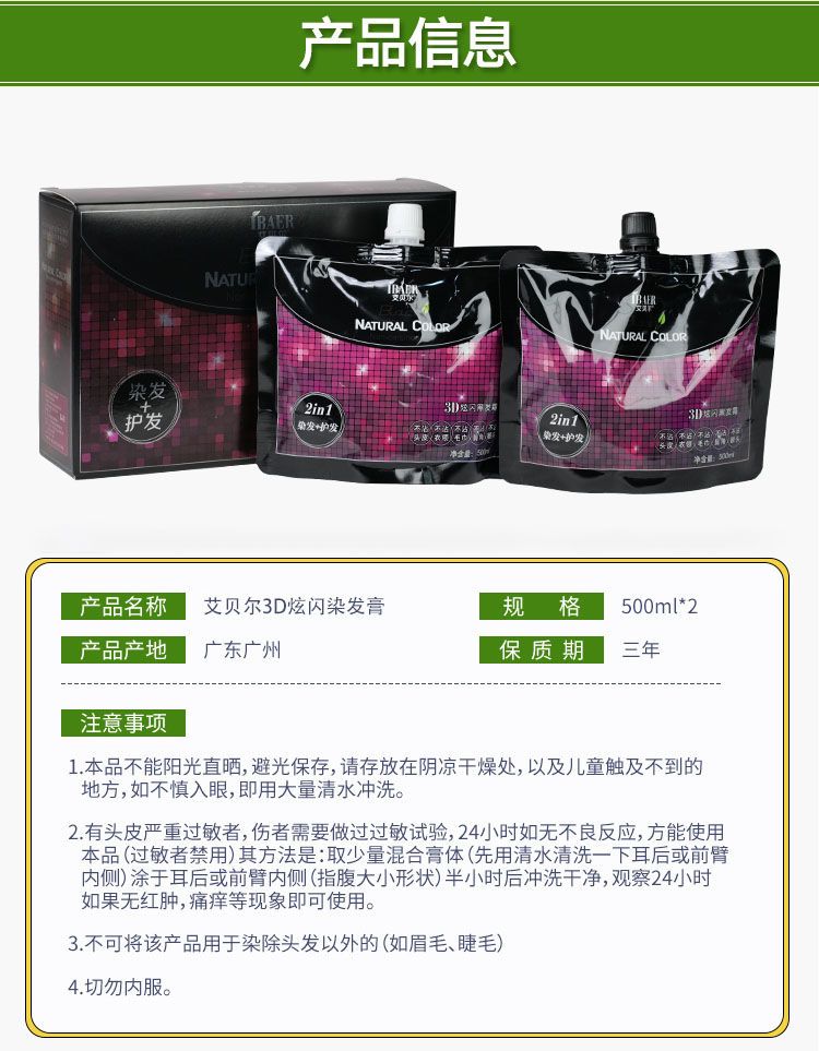 【爆款超低价预售 急单慎拍】艾贝尔3D炫闪黑发霜1000ML植物染发膏自然黑色染发剂清水一梳黑