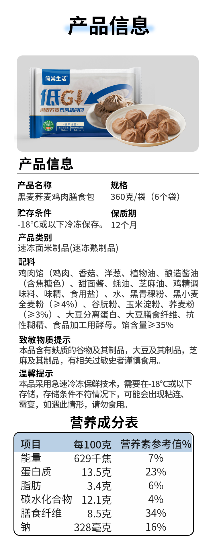【低GI黑麦荞麦控糖粗粮代餐主食】简棠生活低GI黑麦荞麦鸡肉膳食包360g*2袋