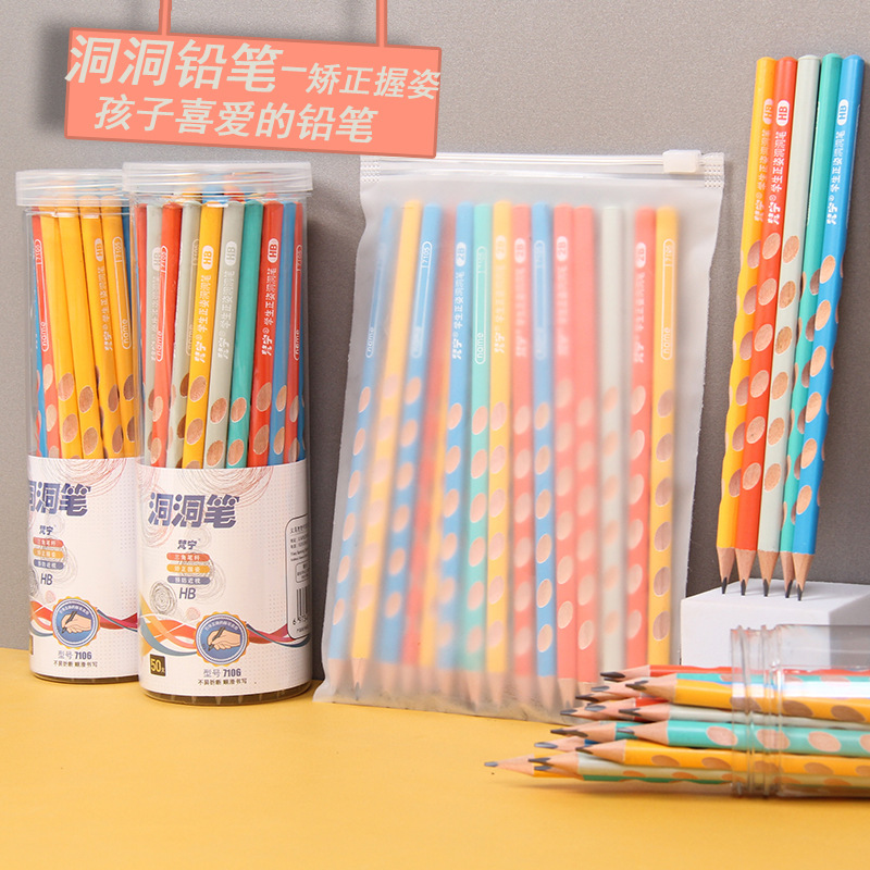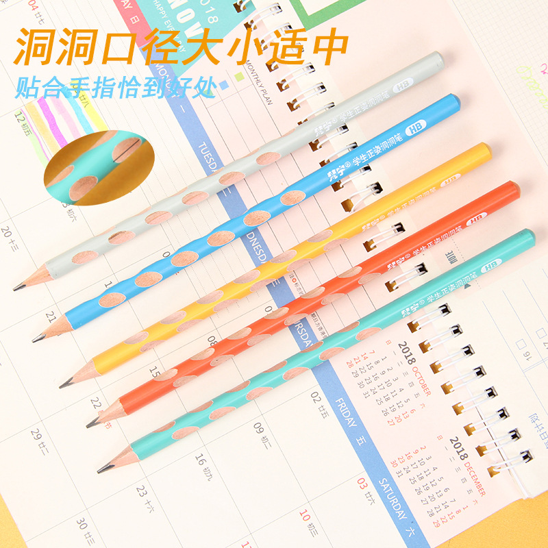 【彩色洞洞笔,安全防咬设计】彩色洞洞笔小学生幼儿园石墨初学正姿书写