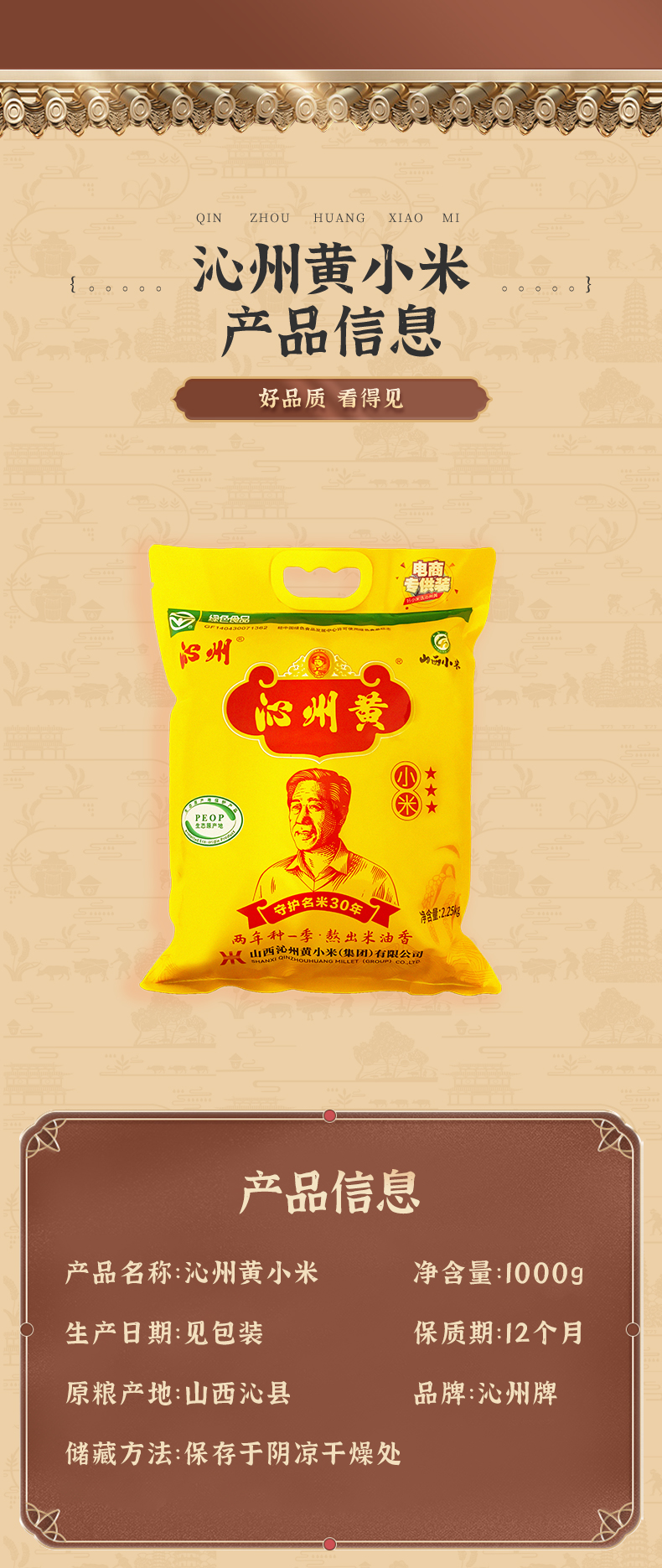 【绿色食品】山西沁州黄小米1kg小米杂粮小黄米山西特产五谷粗粮 两年种一季