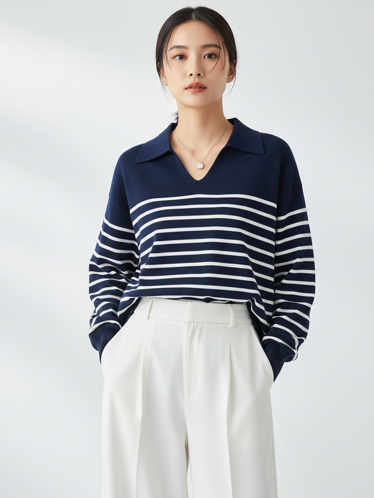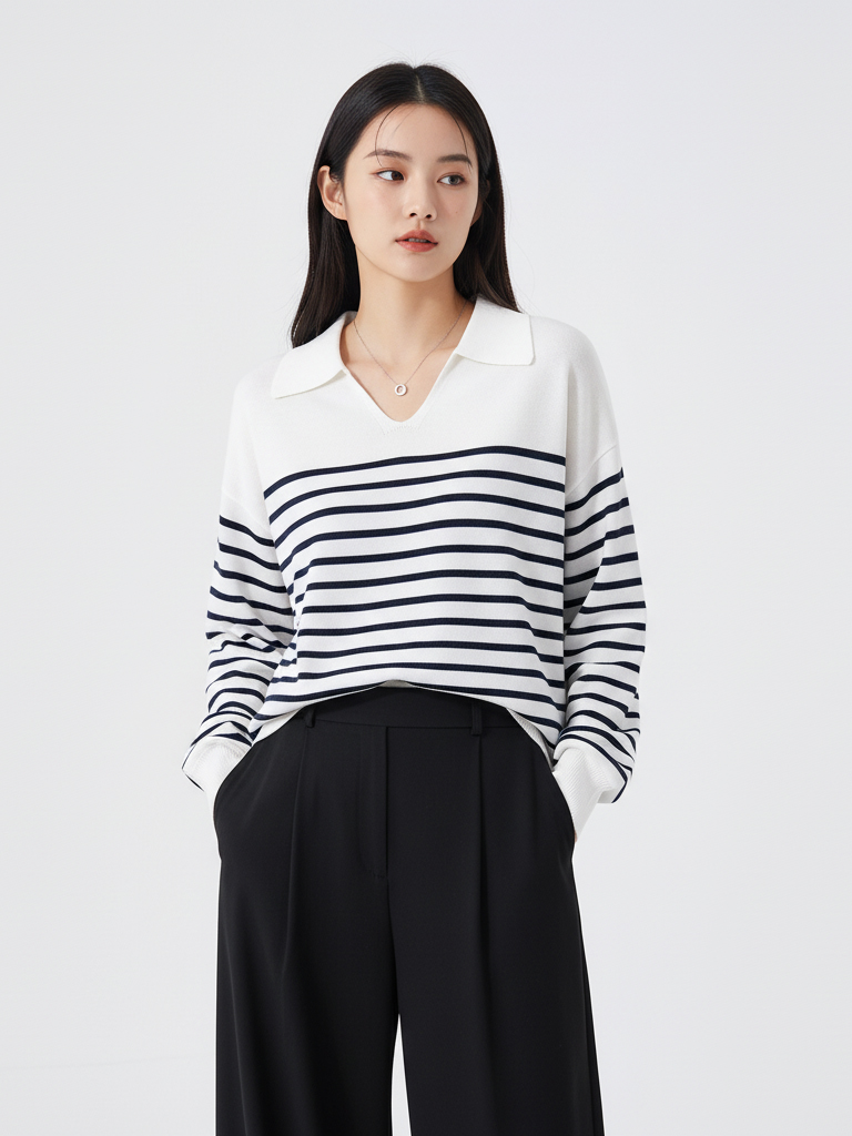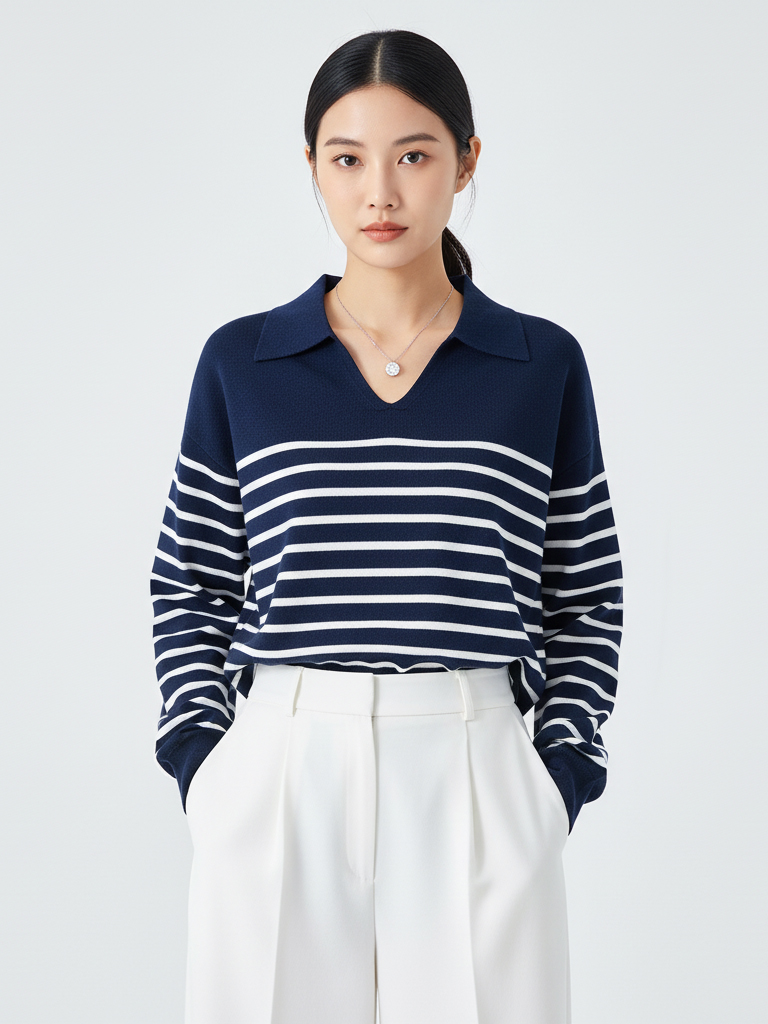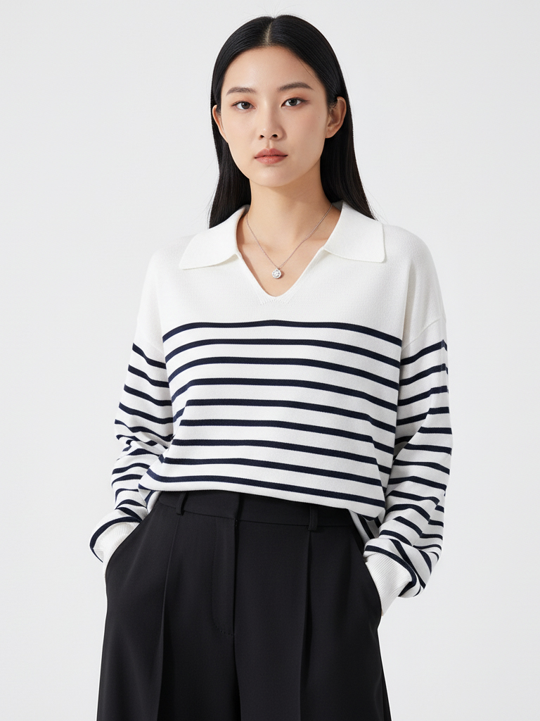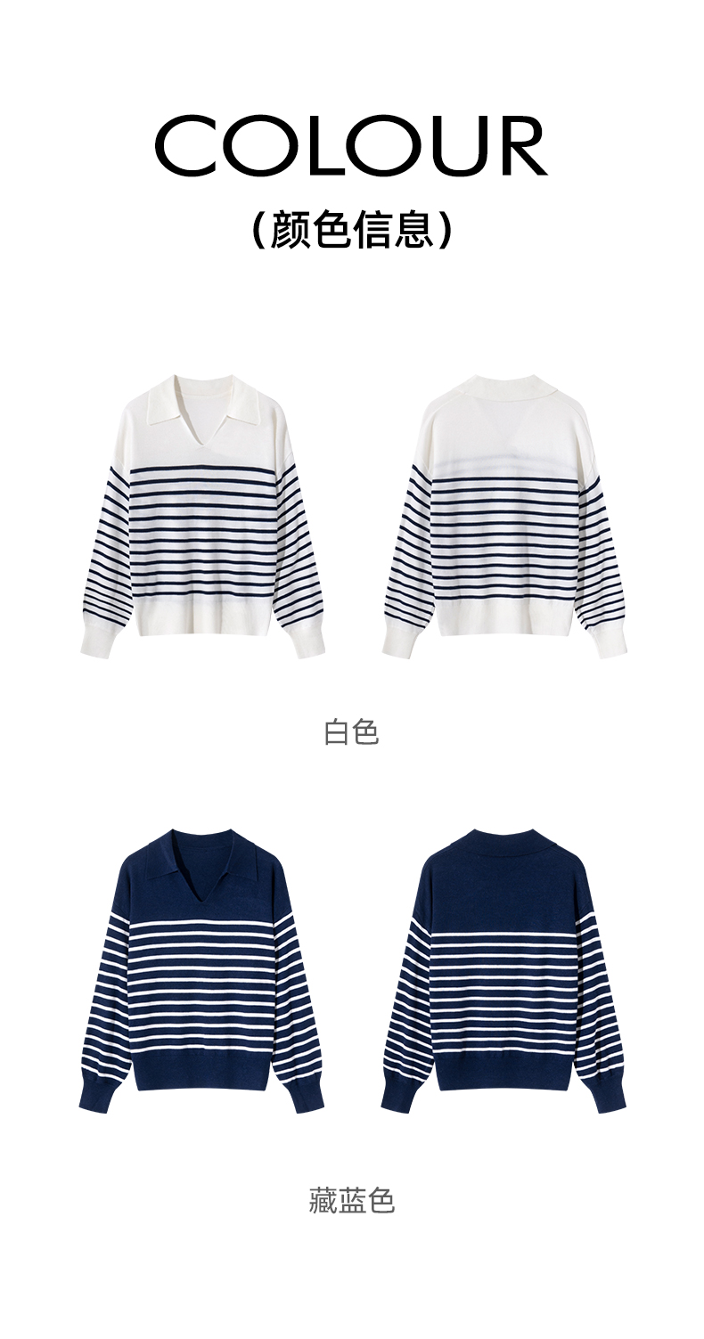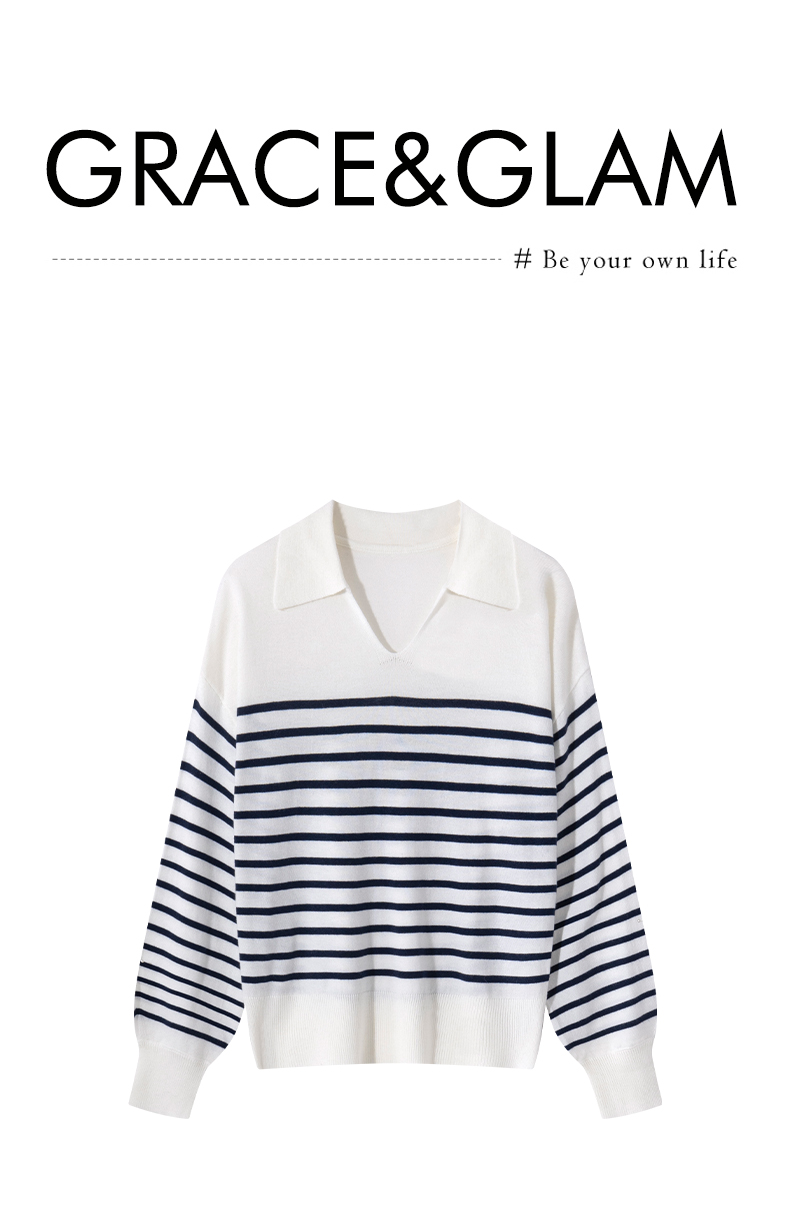 Grace&Glam 经典POLO领减龄条纹羊毛衫