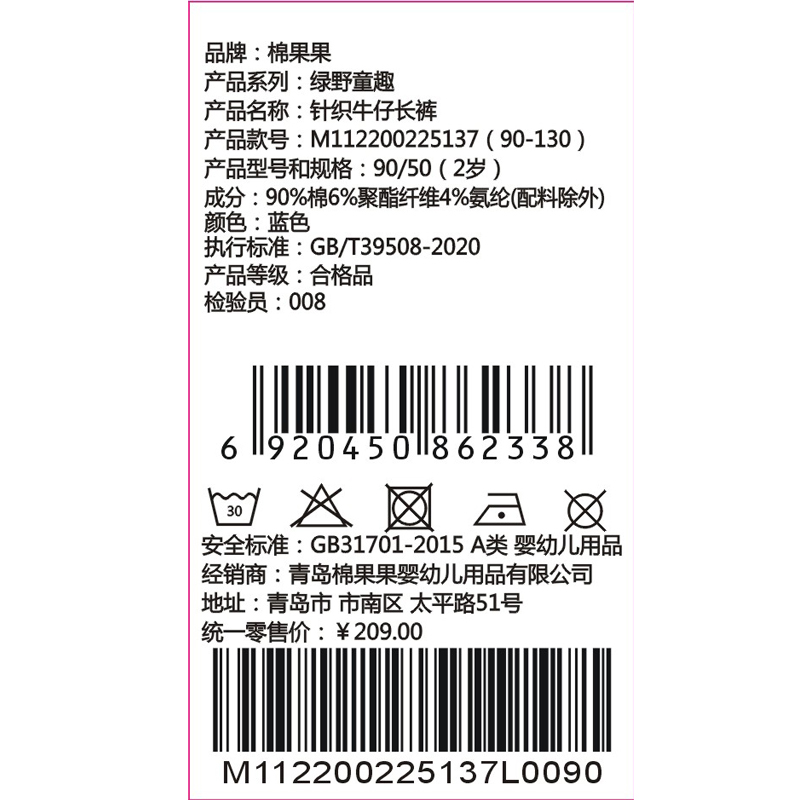 | 总裤长 | 51 | 56.5 | 62.5 | 68.5 | 75 |