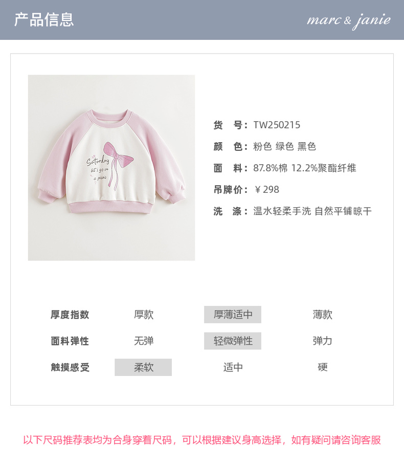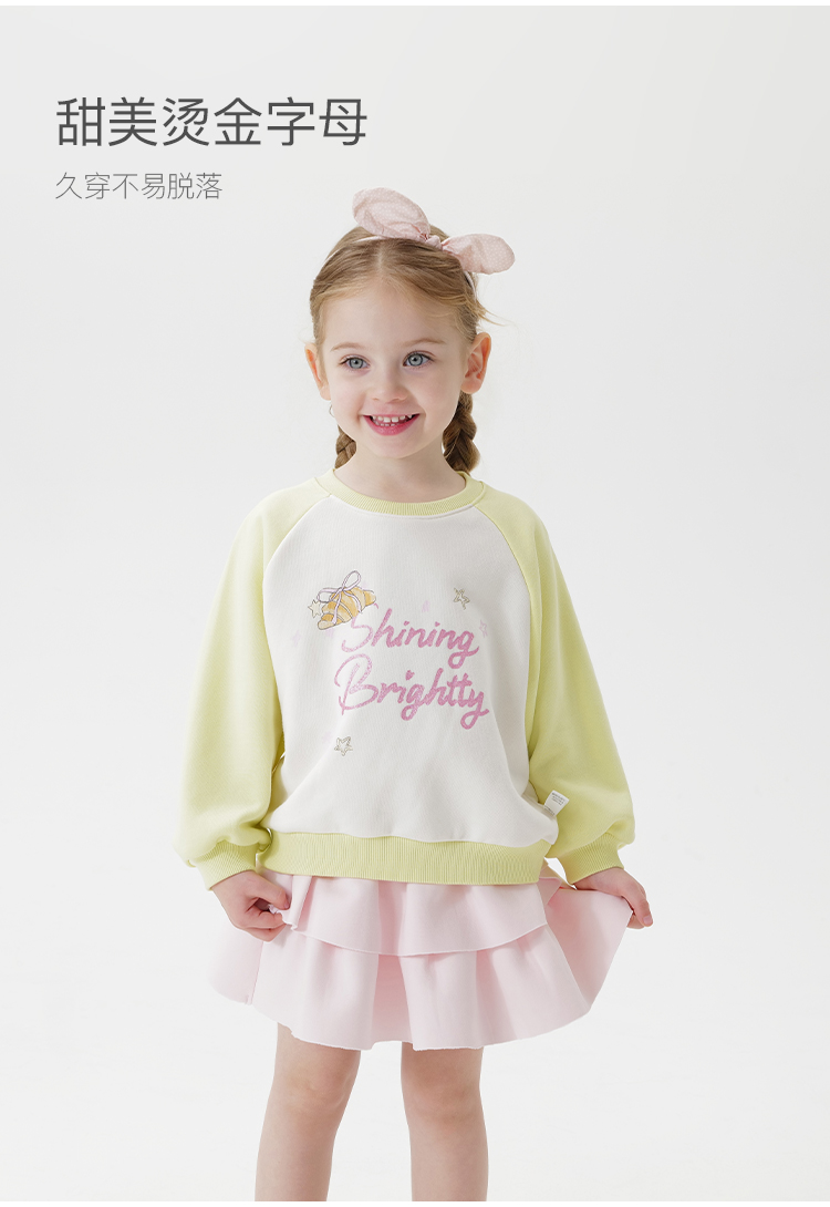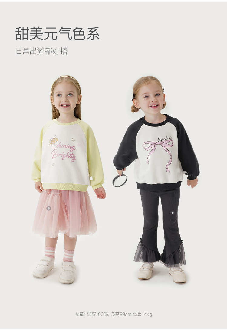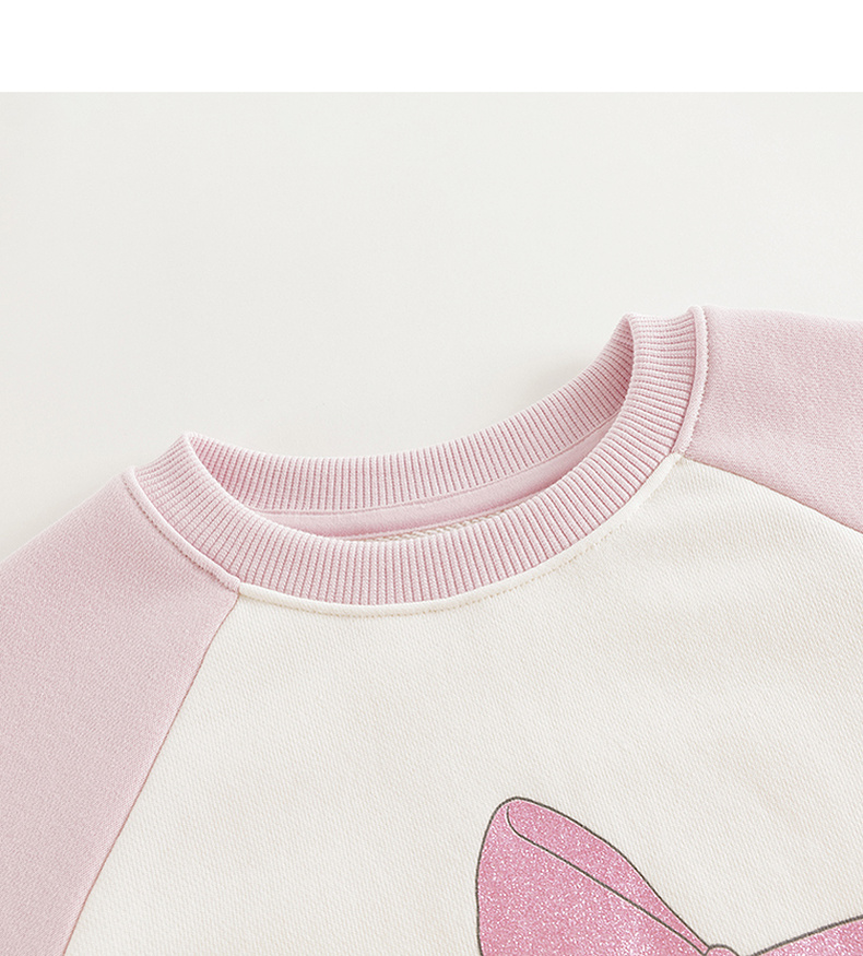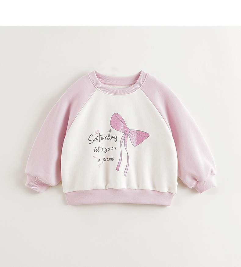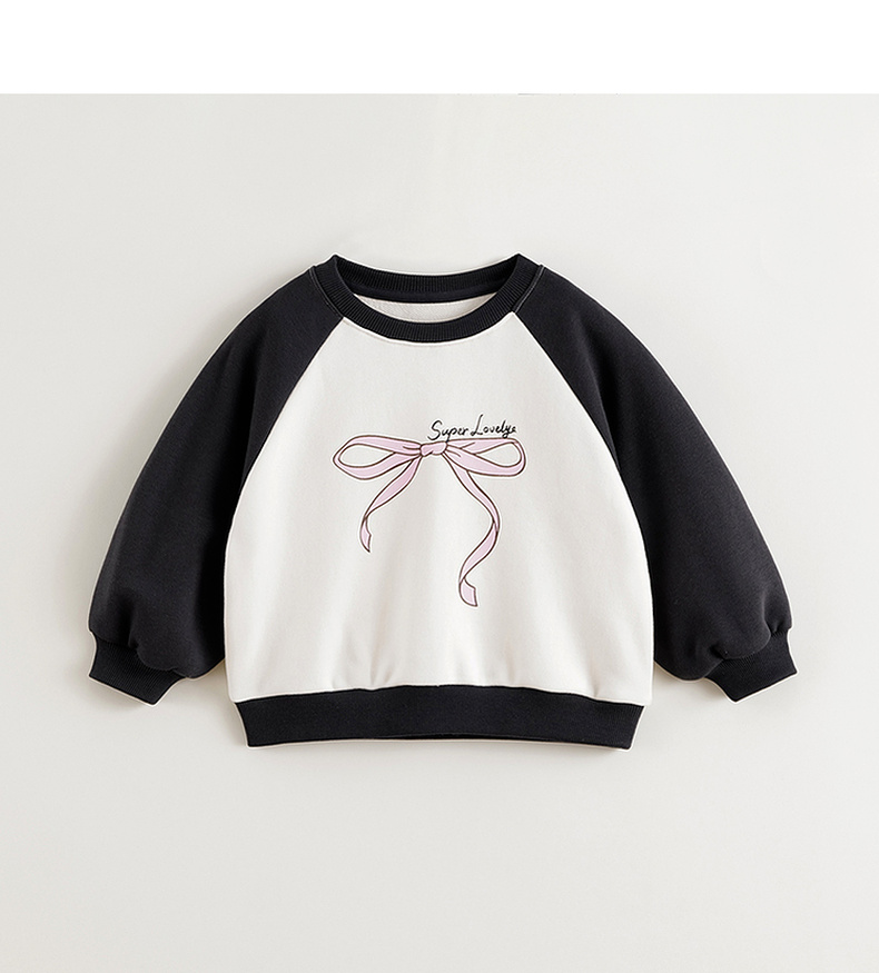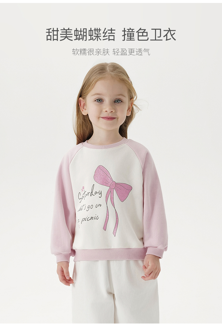 马克珍妮女童俏皮蝴蝶结撞色插肩袖卫衣2025年春装新款250215