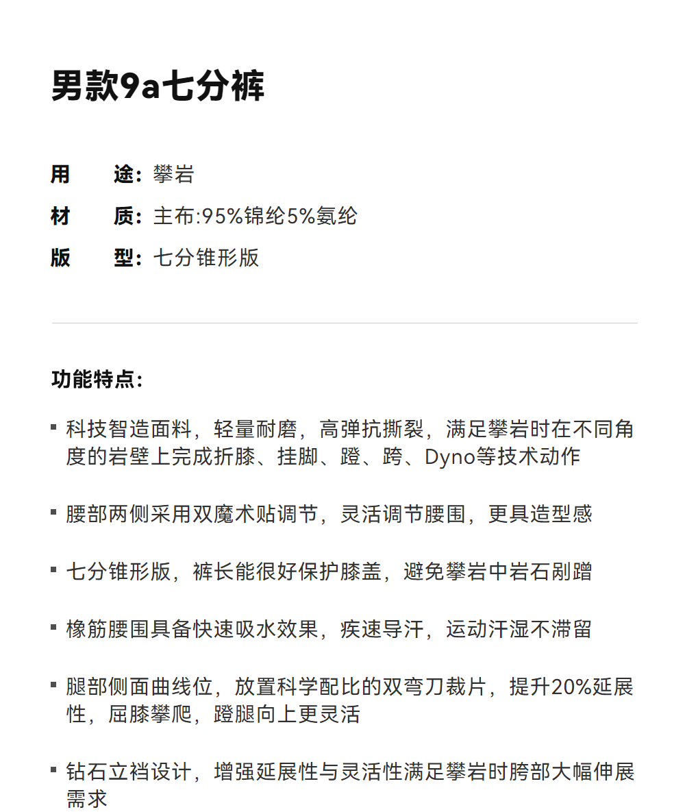 KAILAS凯乐石 男款9a七分裤 KG2515309【Z】