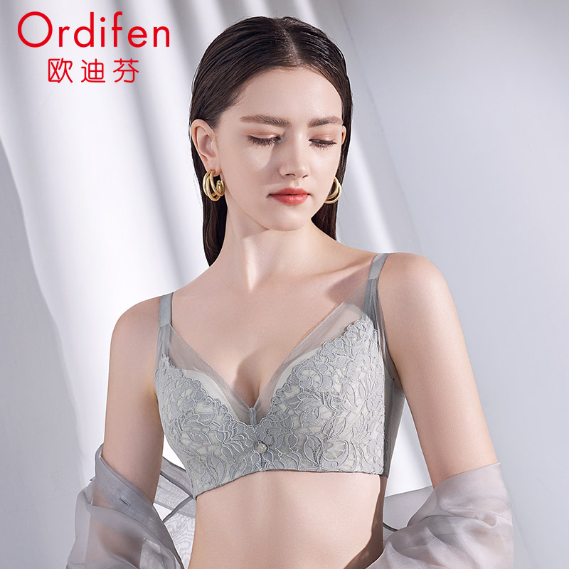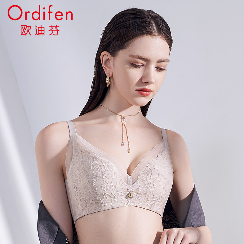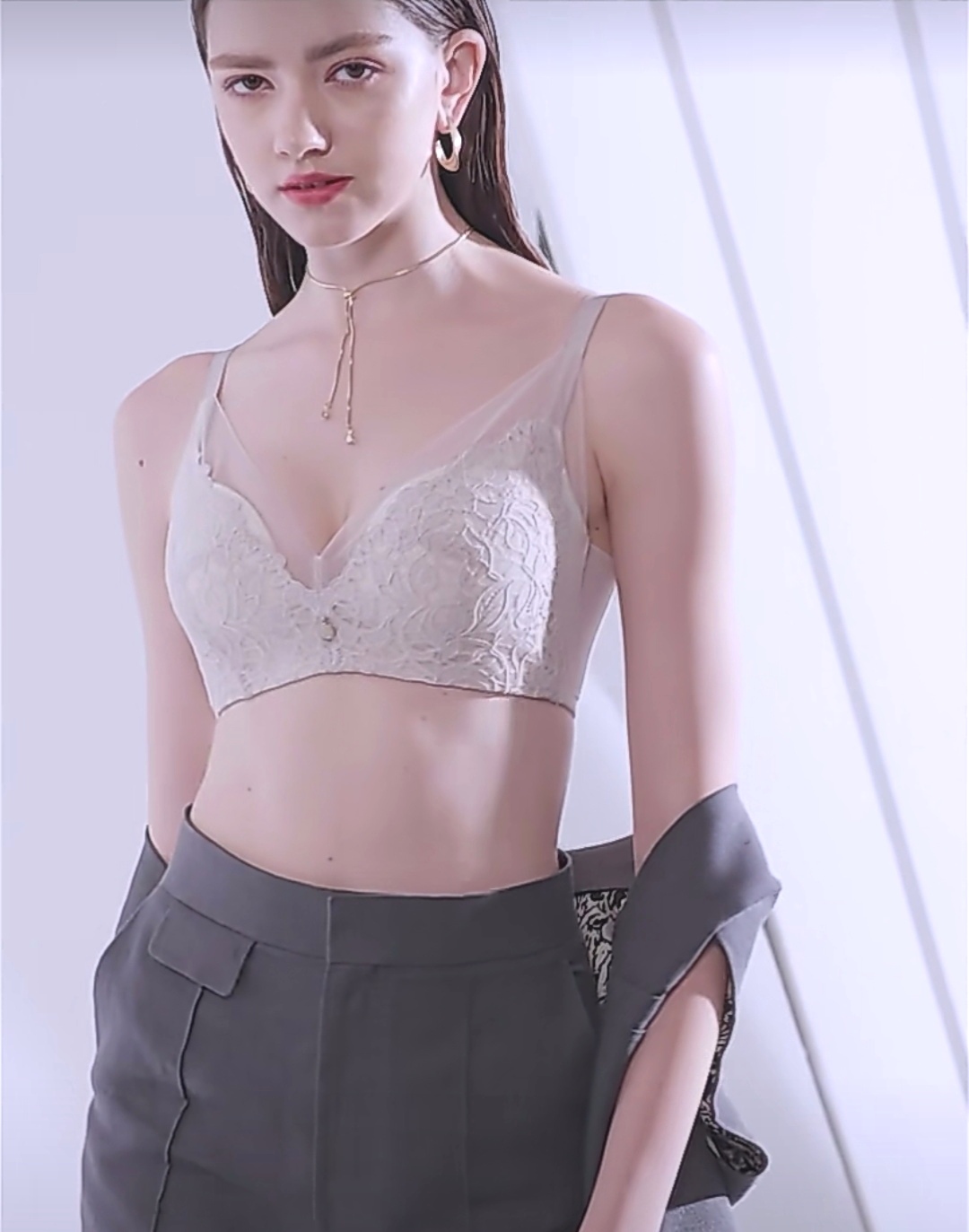 棉感蕾丝系列3/4罩无钢圈模杯款文胸