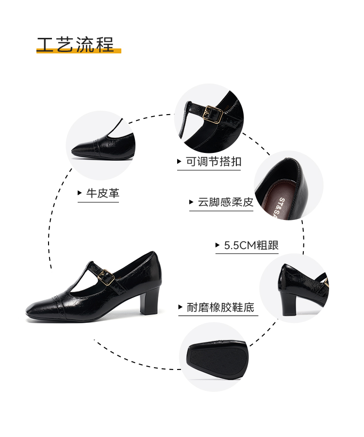 【糯米糍系列】星期六26春新款极简风日常通勤百搭细跟单鞋SSE1111055