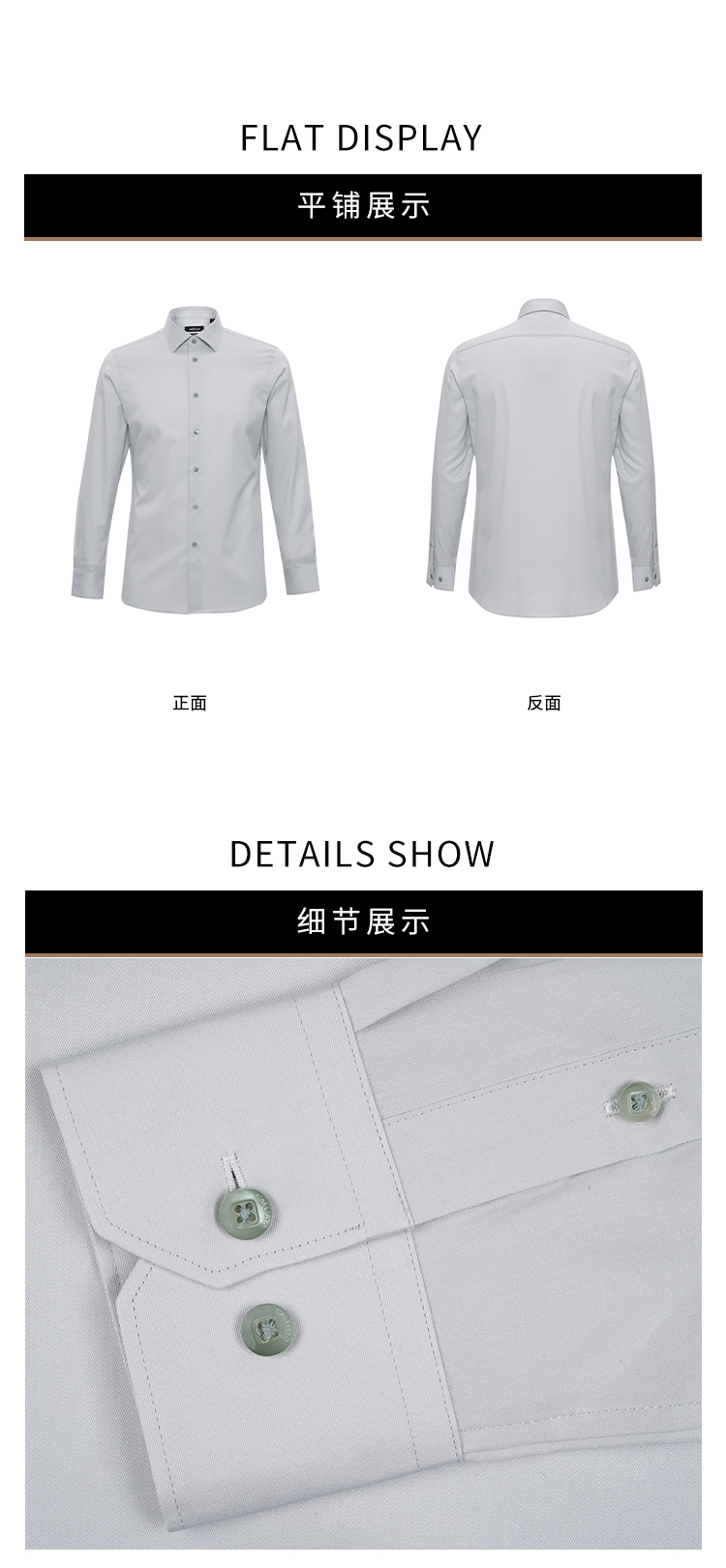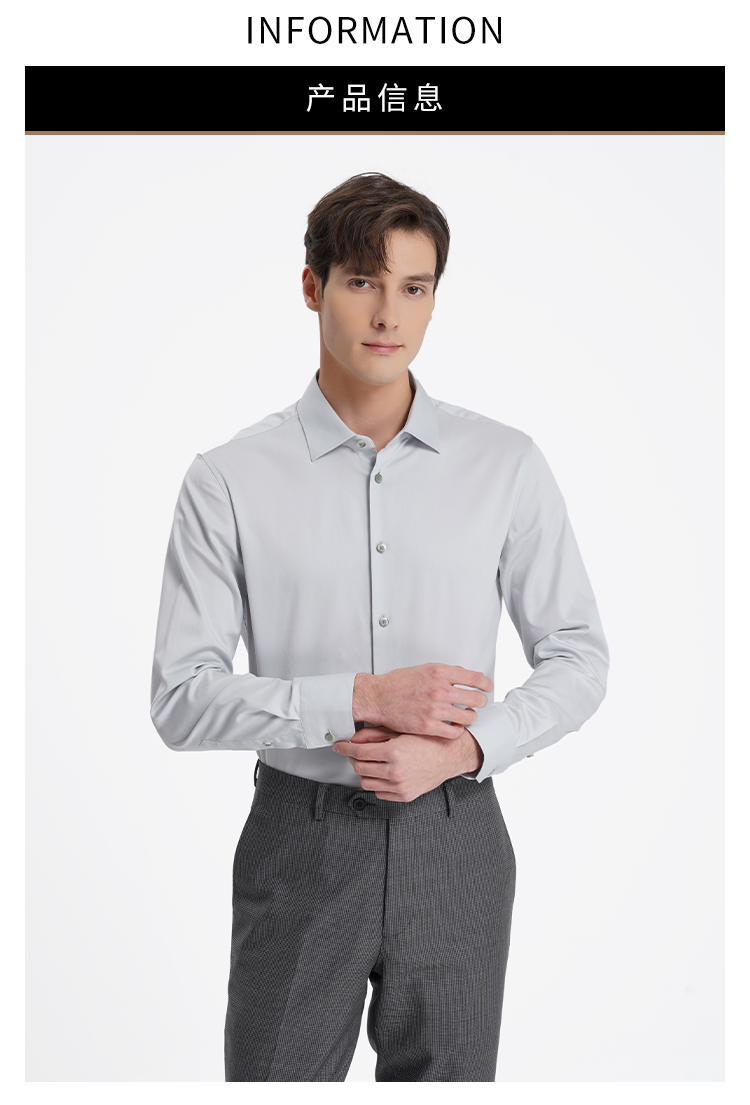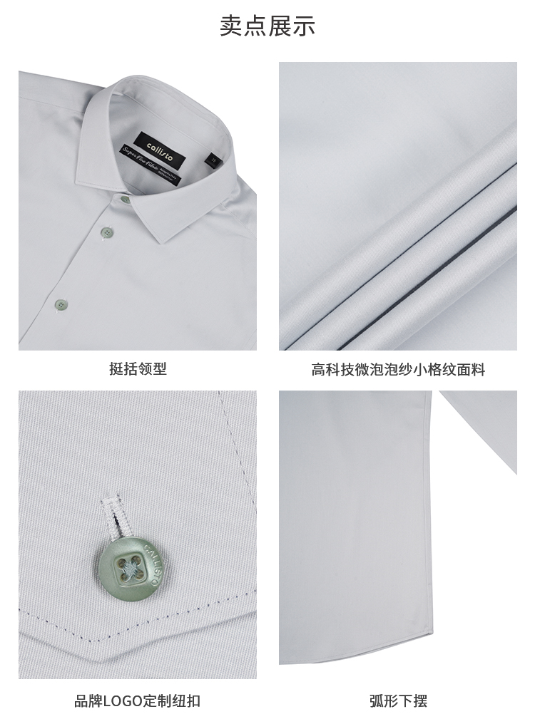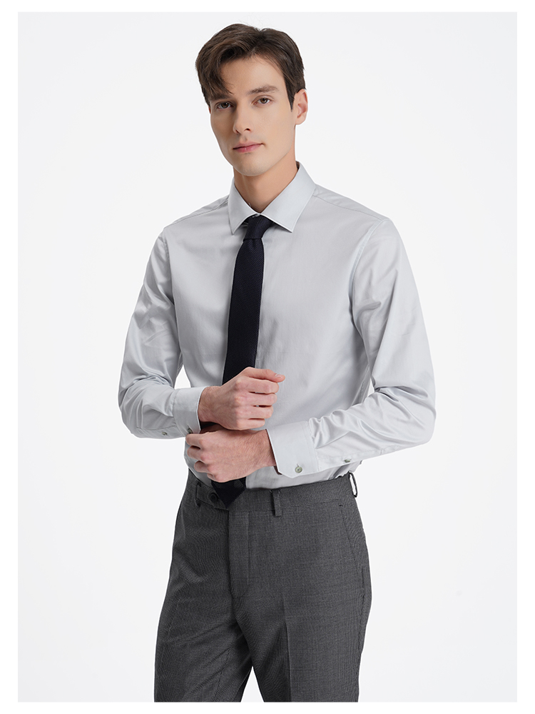 callisto高智系列灰色纯棉长袖衬衫