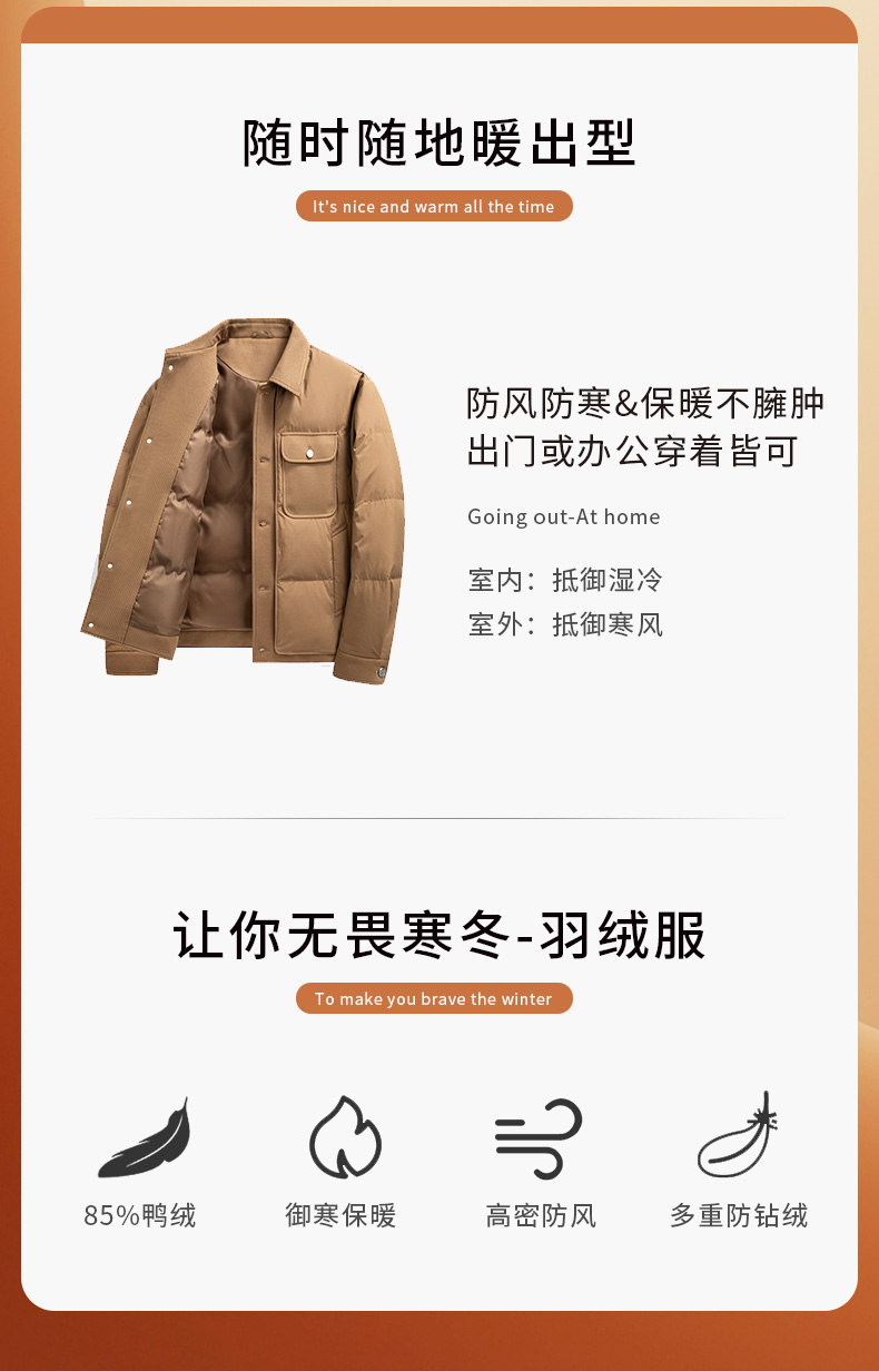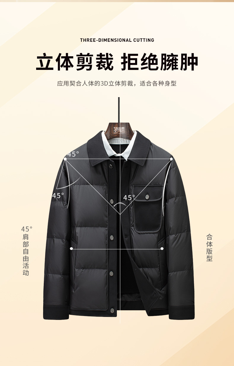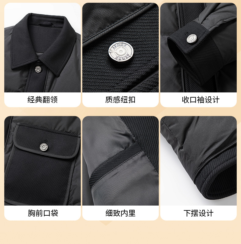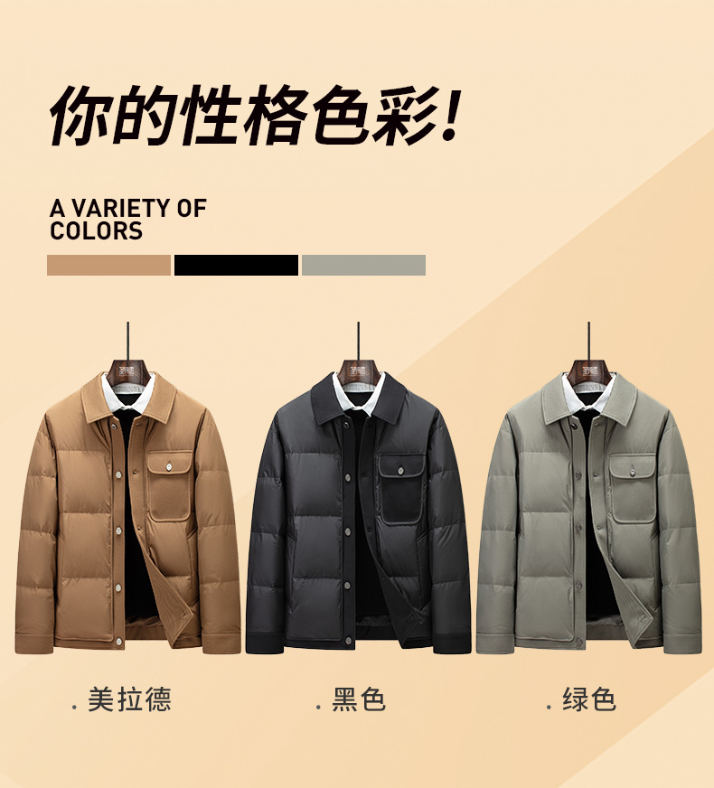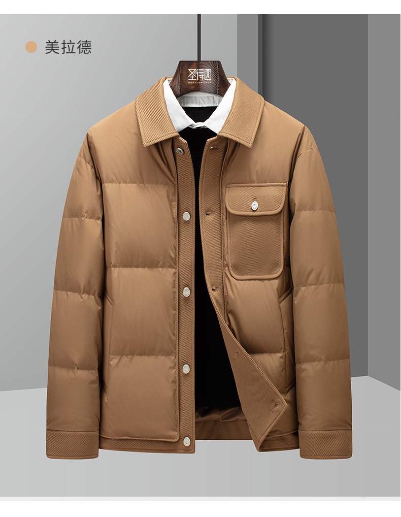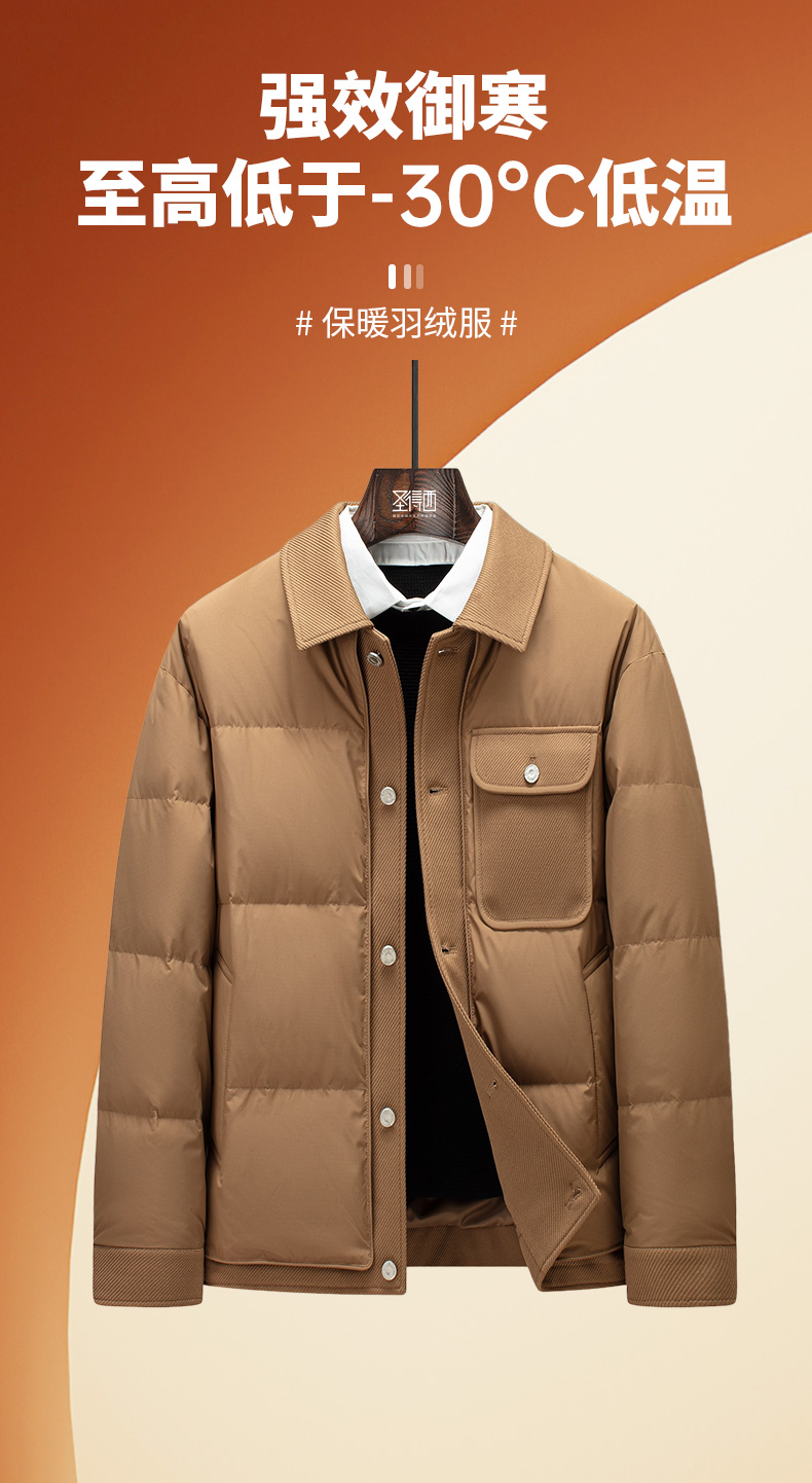 圣得西美拉德时尚保暖羽绒服男士冬季户外工装风翻领夹克外套