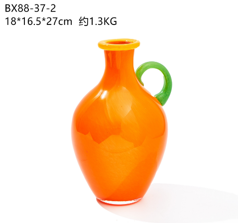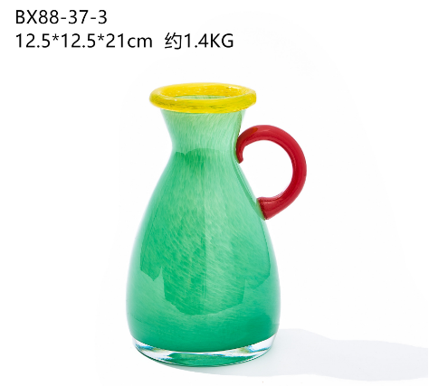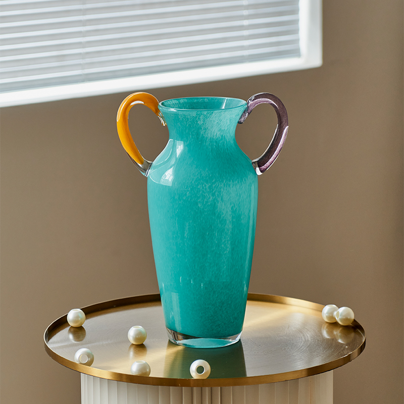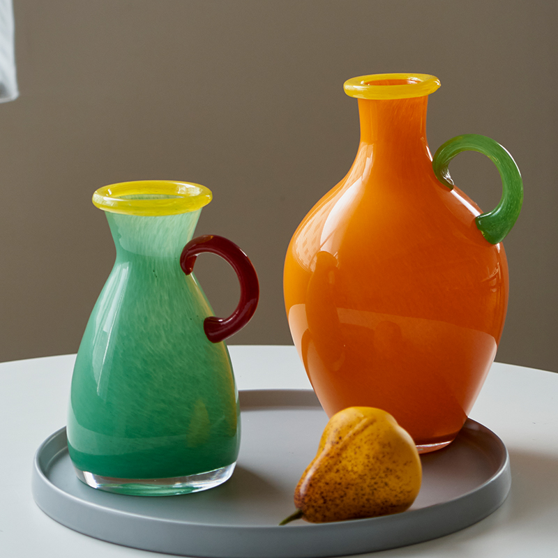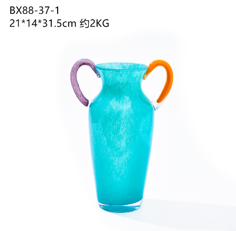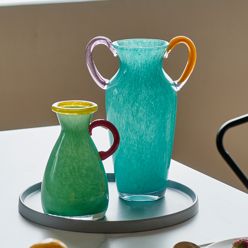 创意中古风双耳彩色玻璃花瓶鲜花干花台面电视柜软装家居酒店装饰