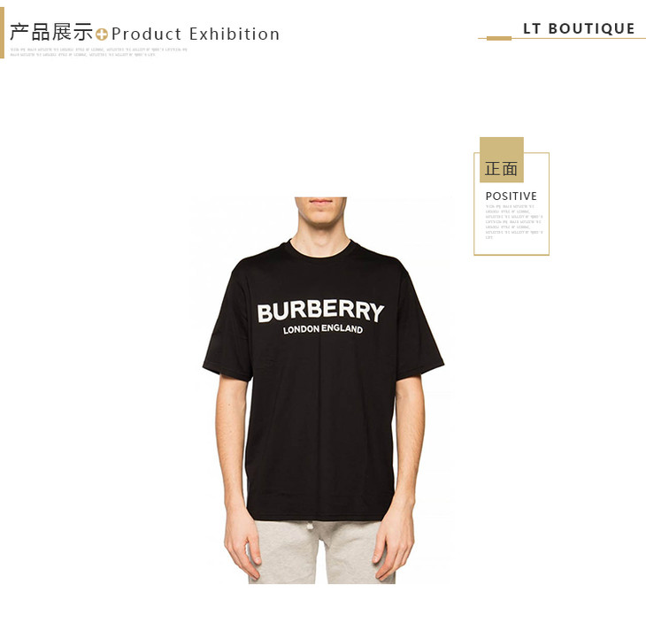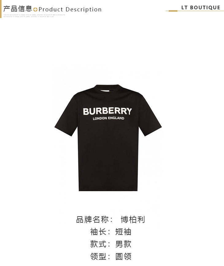 【一】BURBERRY 博柏利 早春新款套头圆领字母印花棉质男士短袖T恤 黑色 8026016 A1189