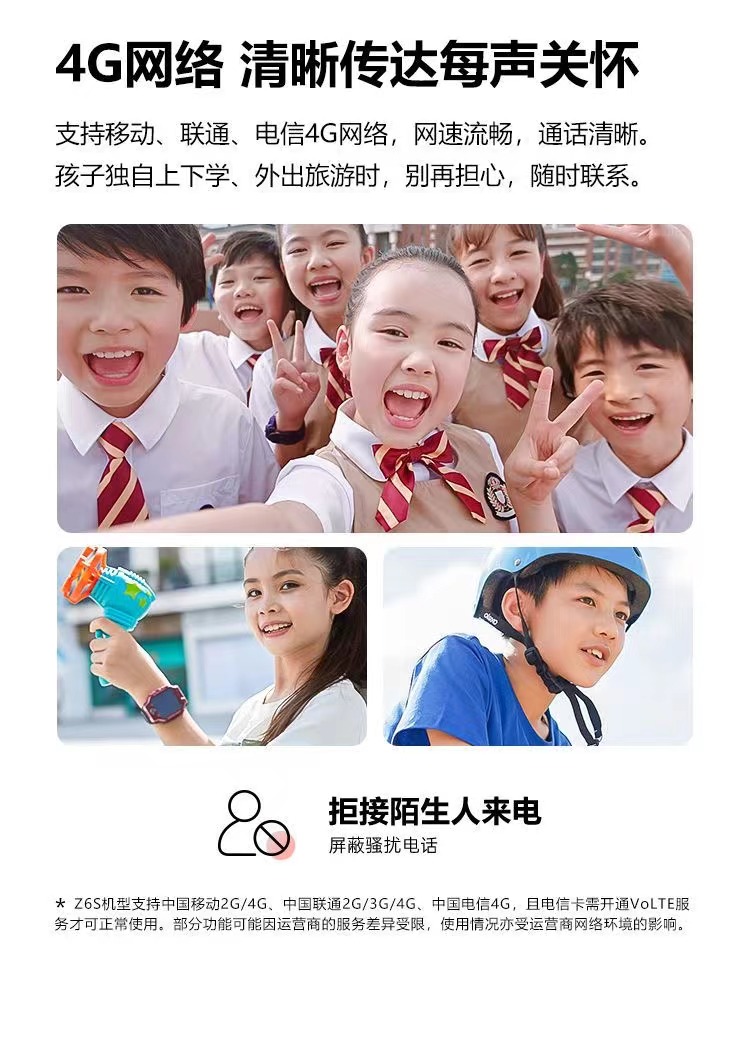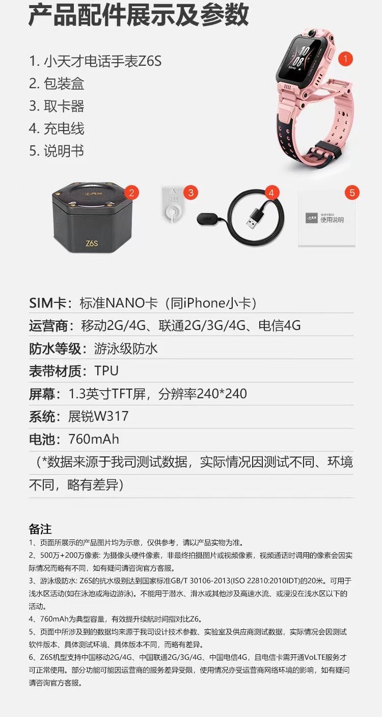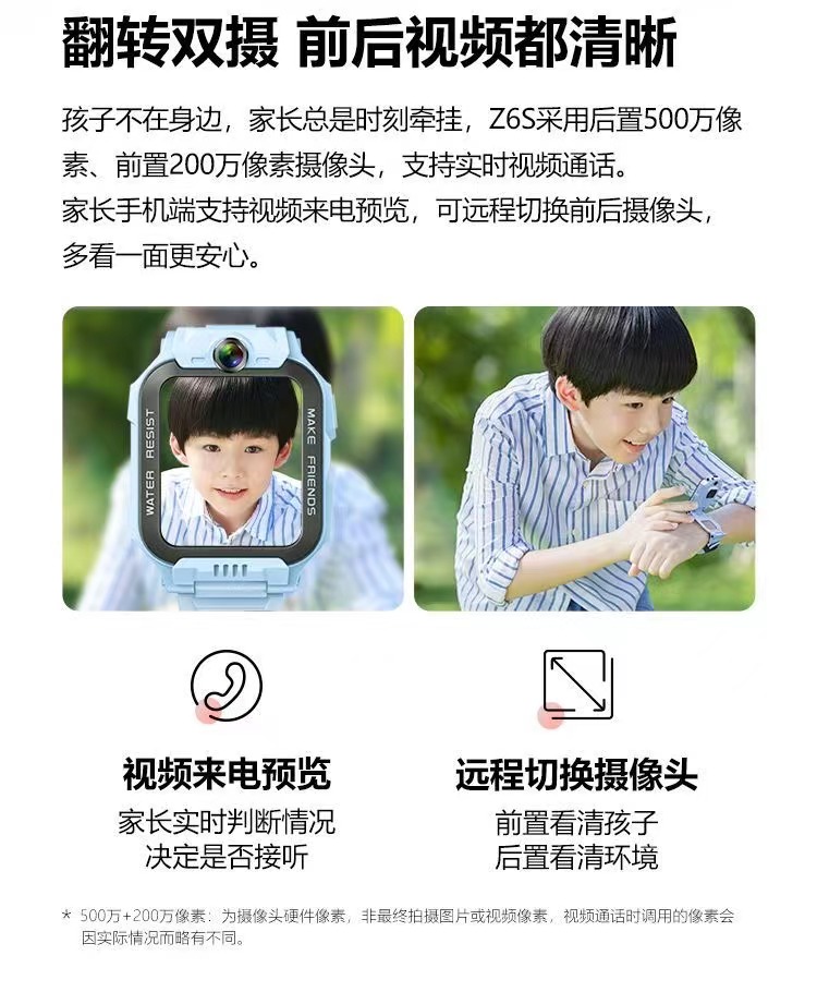小天才z6s电话手表 | 爸妈的安心保障,小朋友的社交神器 | 翻转双摄,前后视频都清晰 | 安全定位,多维度守护| 4G网络,网速流程,通话清晰