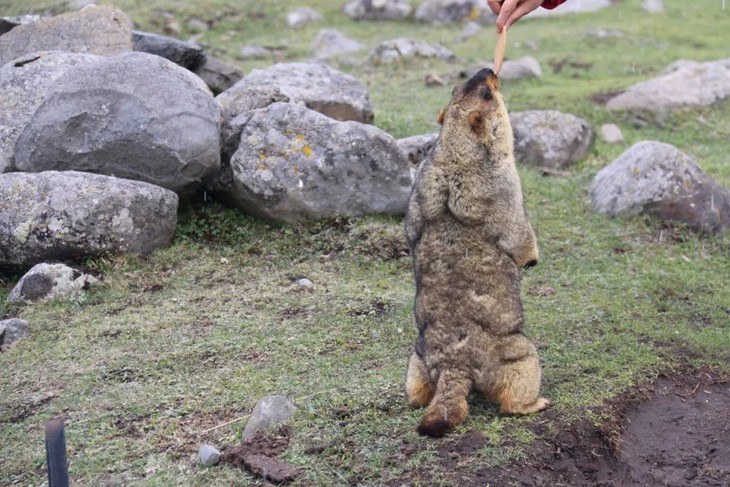据悉,当地最为神奇的是野生旱獭,见人就立身而行,拱掌相拜。