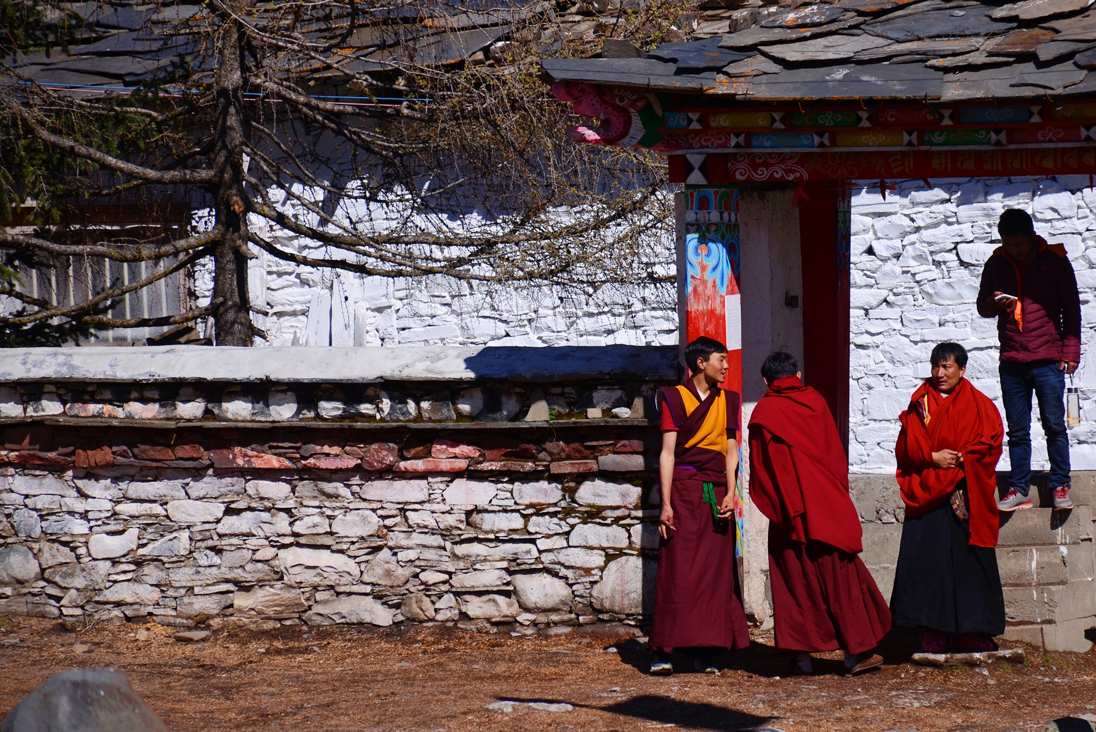 莫斯卡的藏族人自称是草原英雄格萨尔王的后代,全村107户人家、500多藏民与金龙寺相依为命,幸福自由地生活在这片佛教净土上。莫斯卡村就像坛城,金龙寺位于坛城正中央,寺庙主持日穹活佛是莫斯卡的精神领袖,方圆数百里的草原牧民都要听日穹活佛的话。