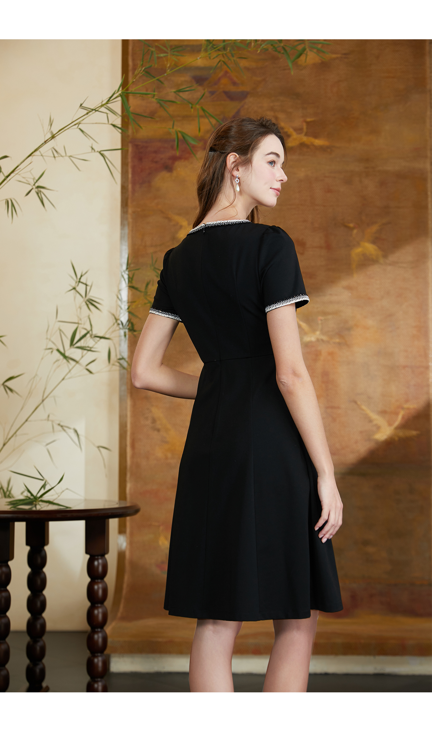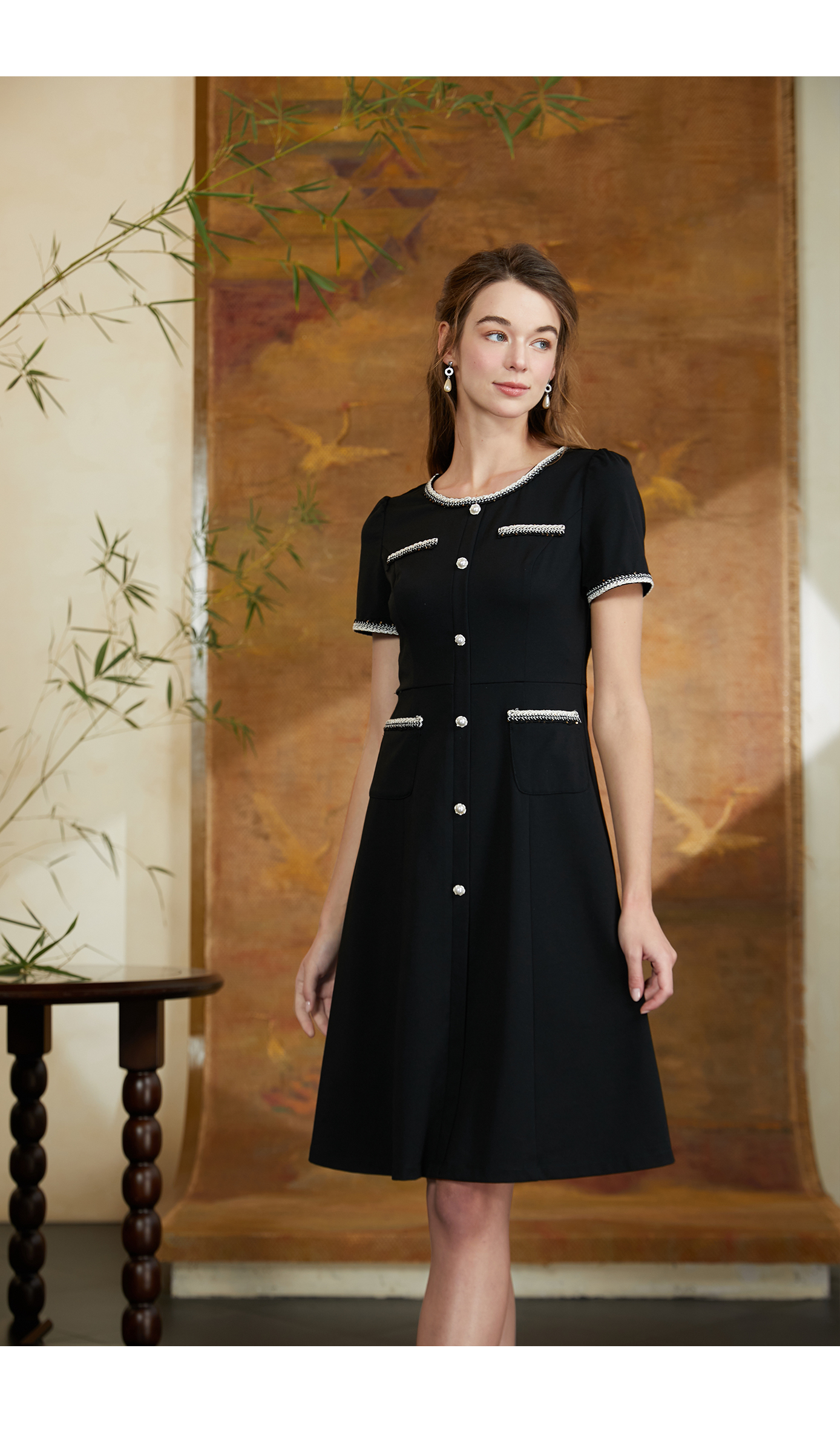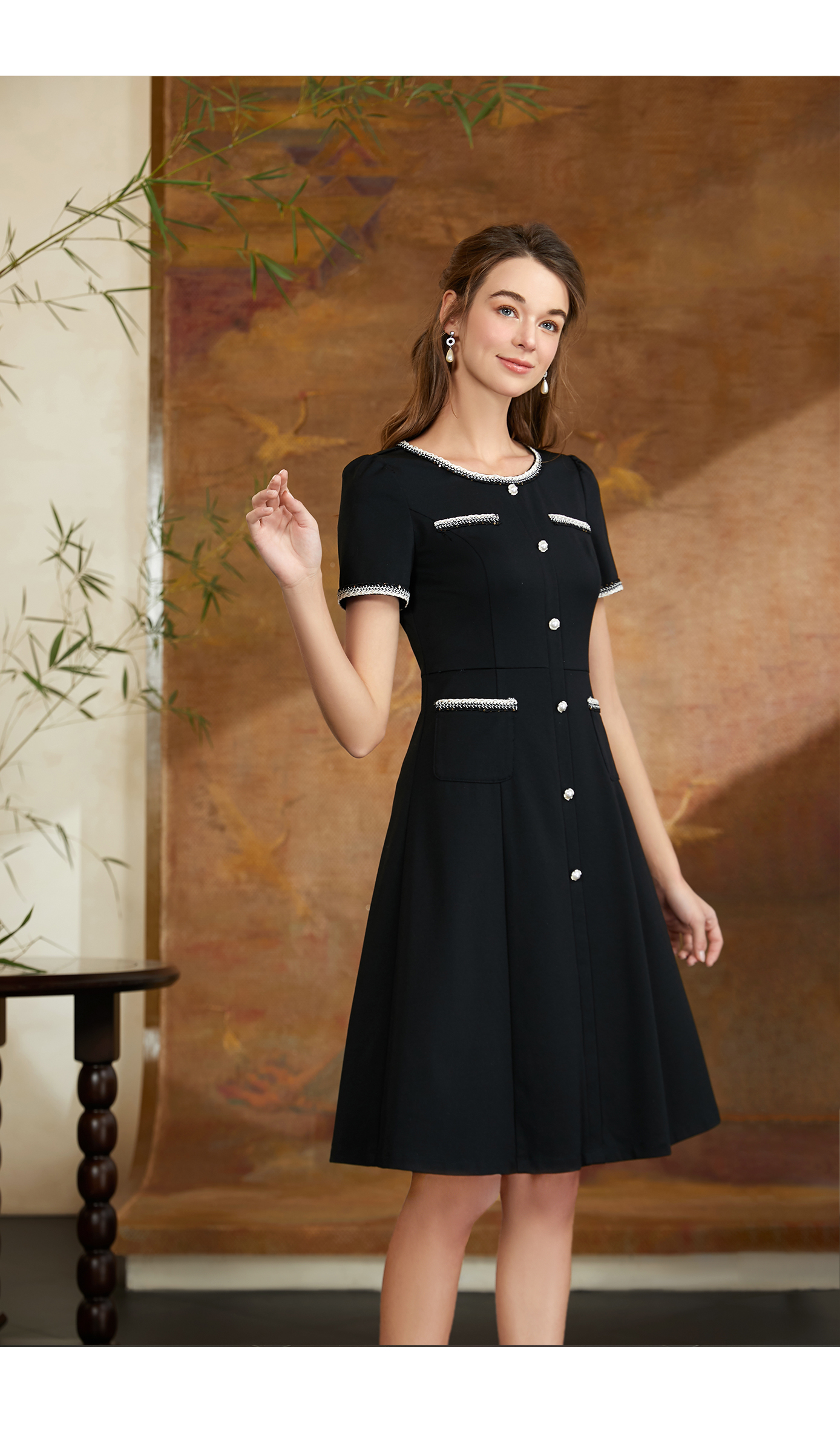 司歌弹力小香风连衣裙圆领短袖A911160X