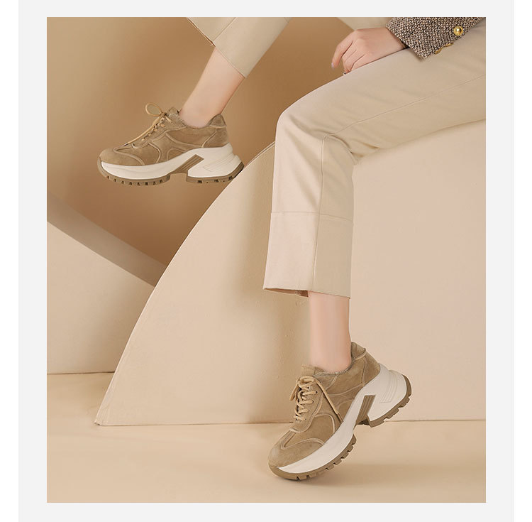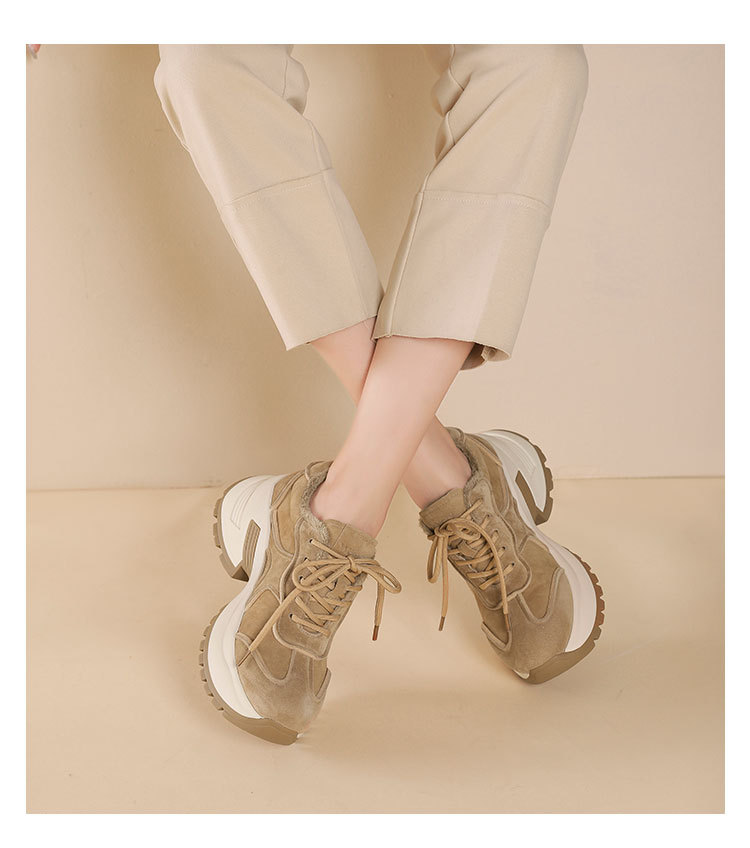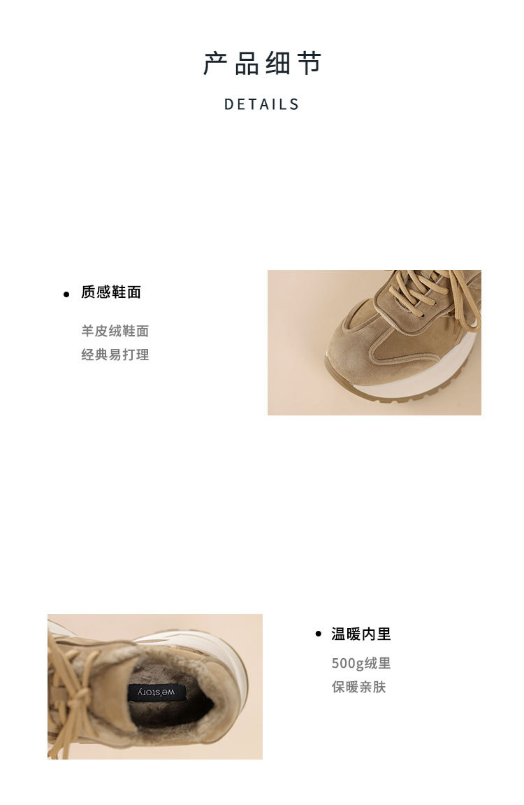 westory2024年秋冬新款休闲风厚底坡跟百搭短靴毛毛休闲鞋S24DM85101