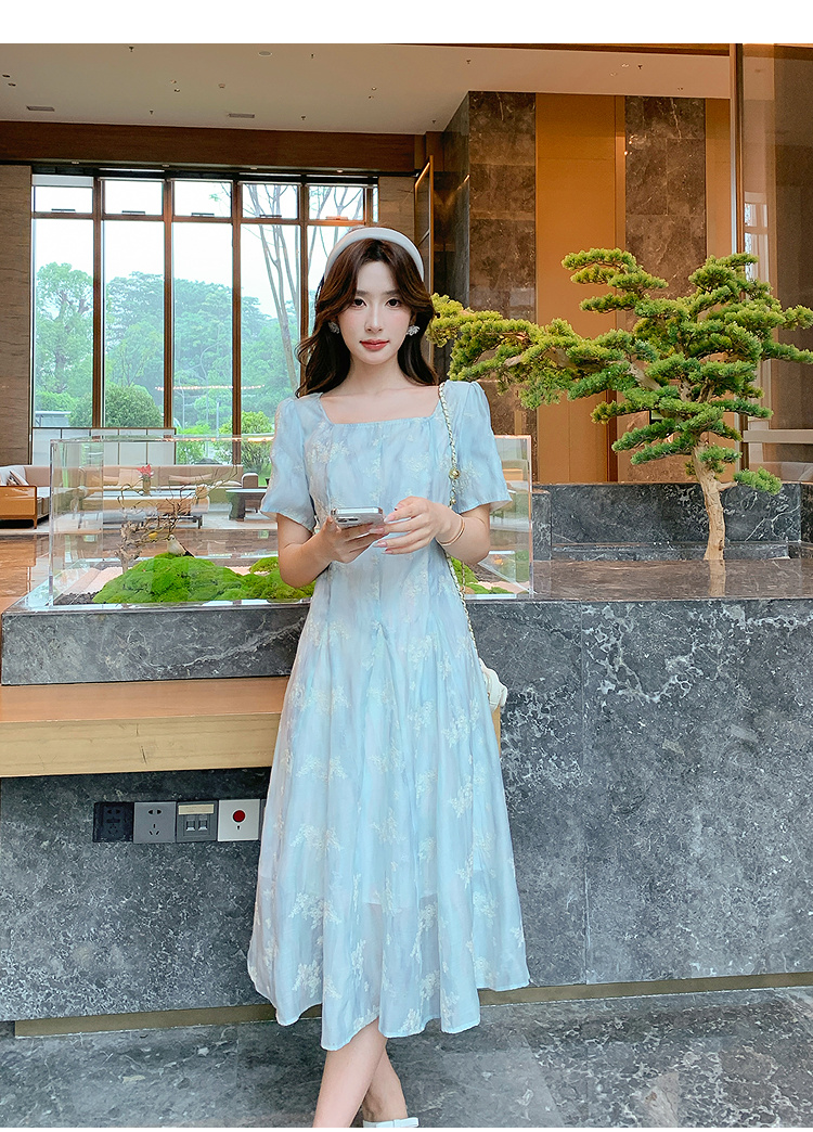 奢姿大码女装2025夏装新款胖妹妹法式方领连衣裙绣花渐变裙子9952869717【1】