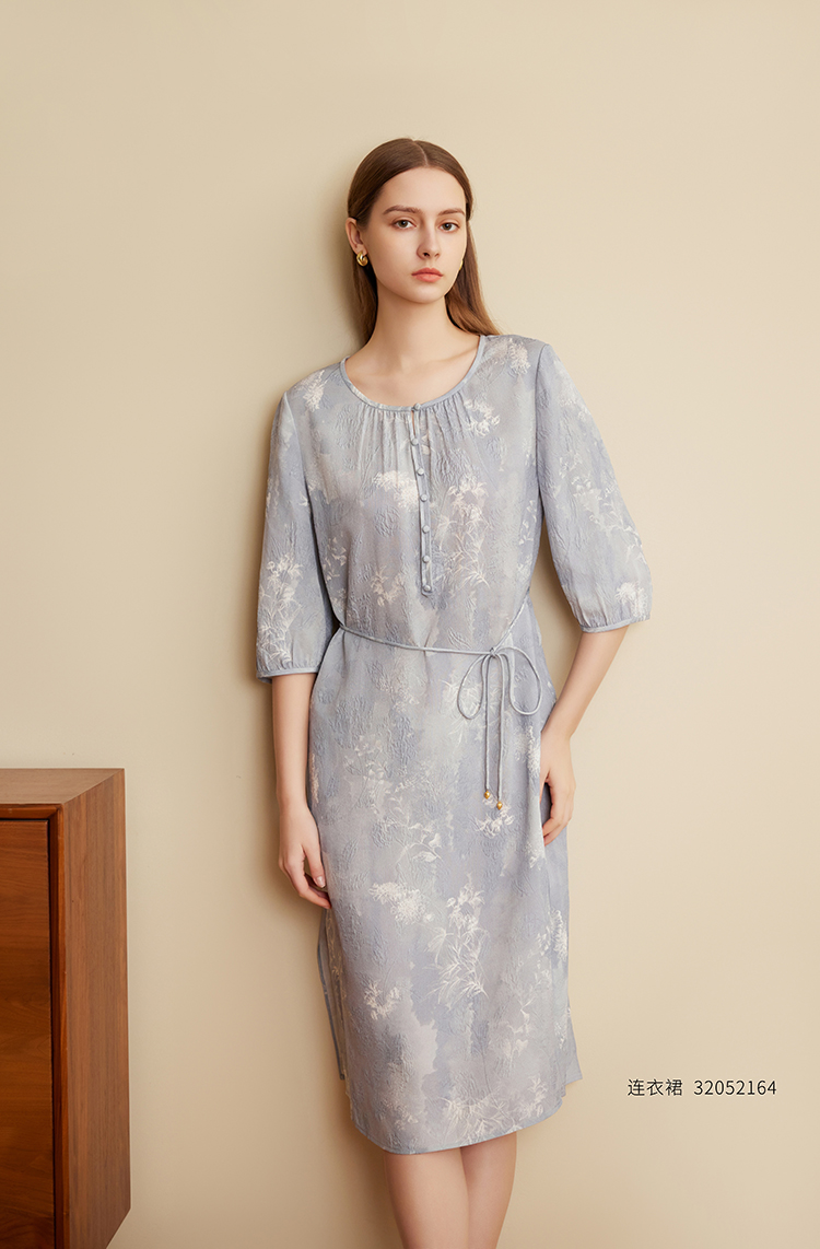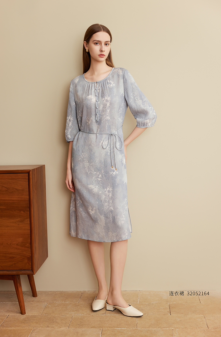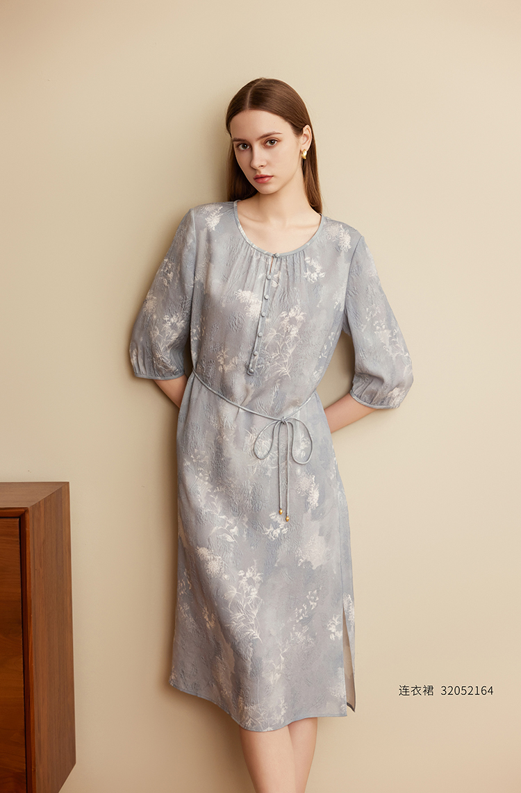 【立体印花真丝裙】25年夏季新品女士100%桑蚕丝薄款系带收腰裙子