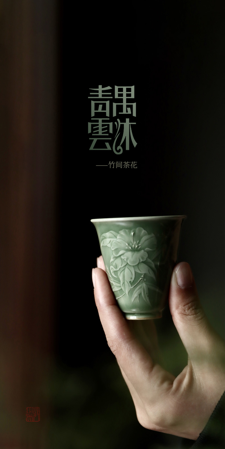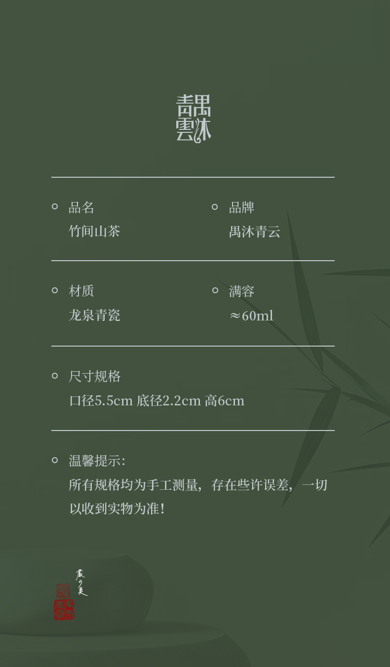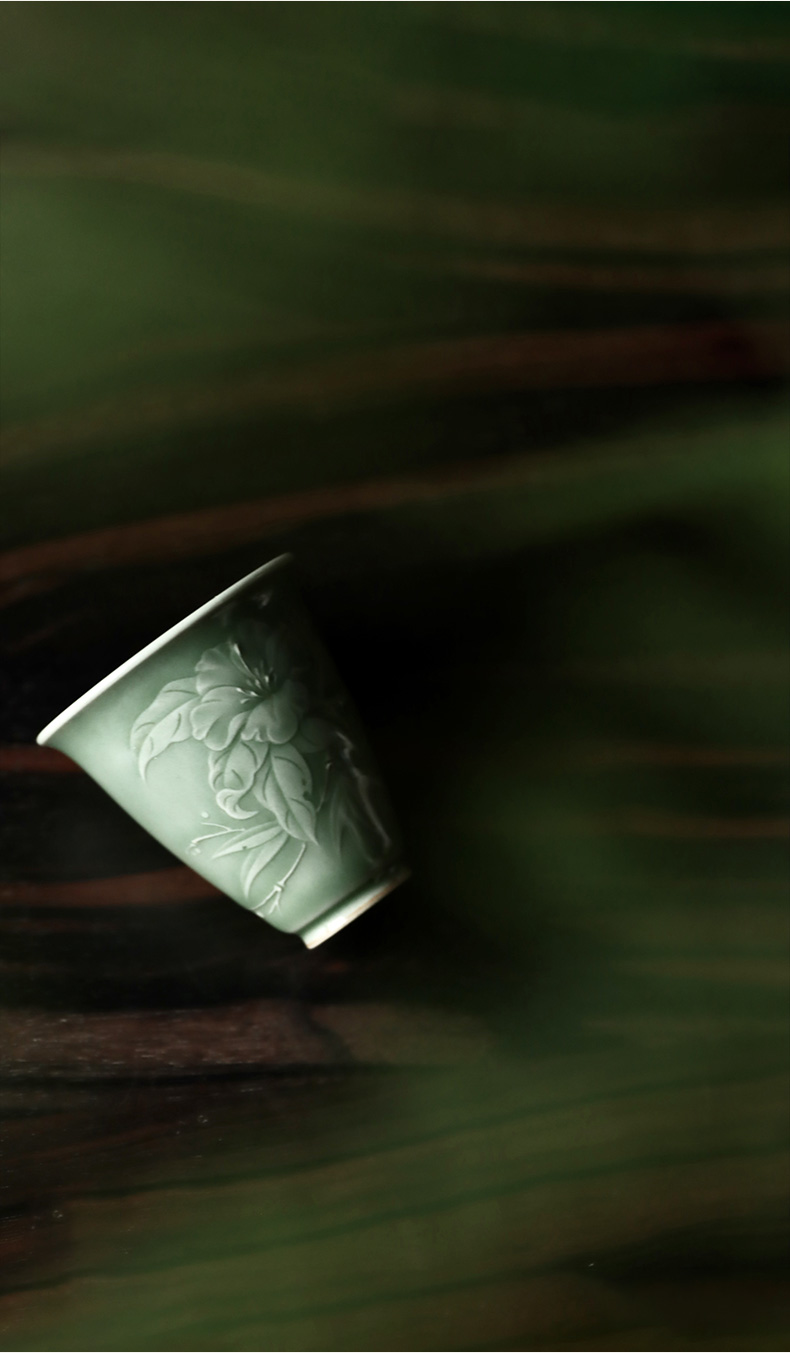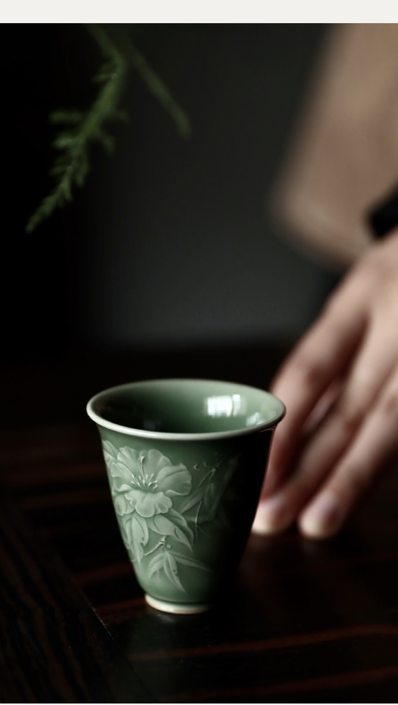 禺沐青云 严少英 竹间山茶杯 龙泉青瓷薄胎厚釉梅子青茶杯青瓷品茗杯名师手作主人杯个人杯