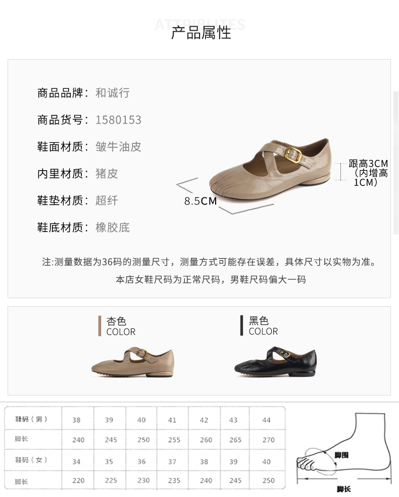 和诚行 2024秋冬新款时尚交叉带芭蕾舞鞋女内增高玛丽珍鞋1580153