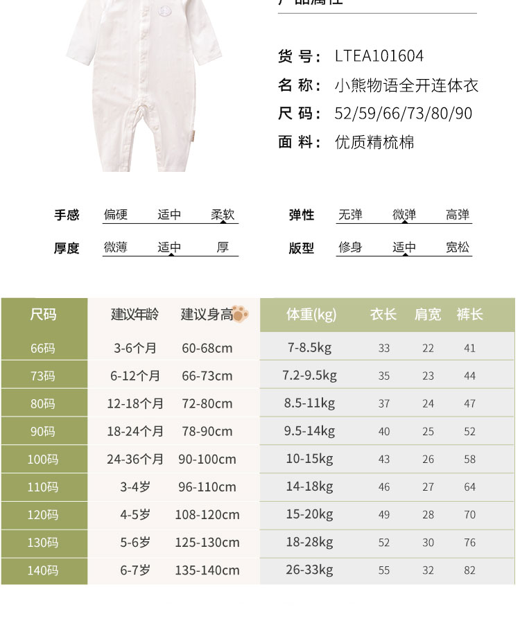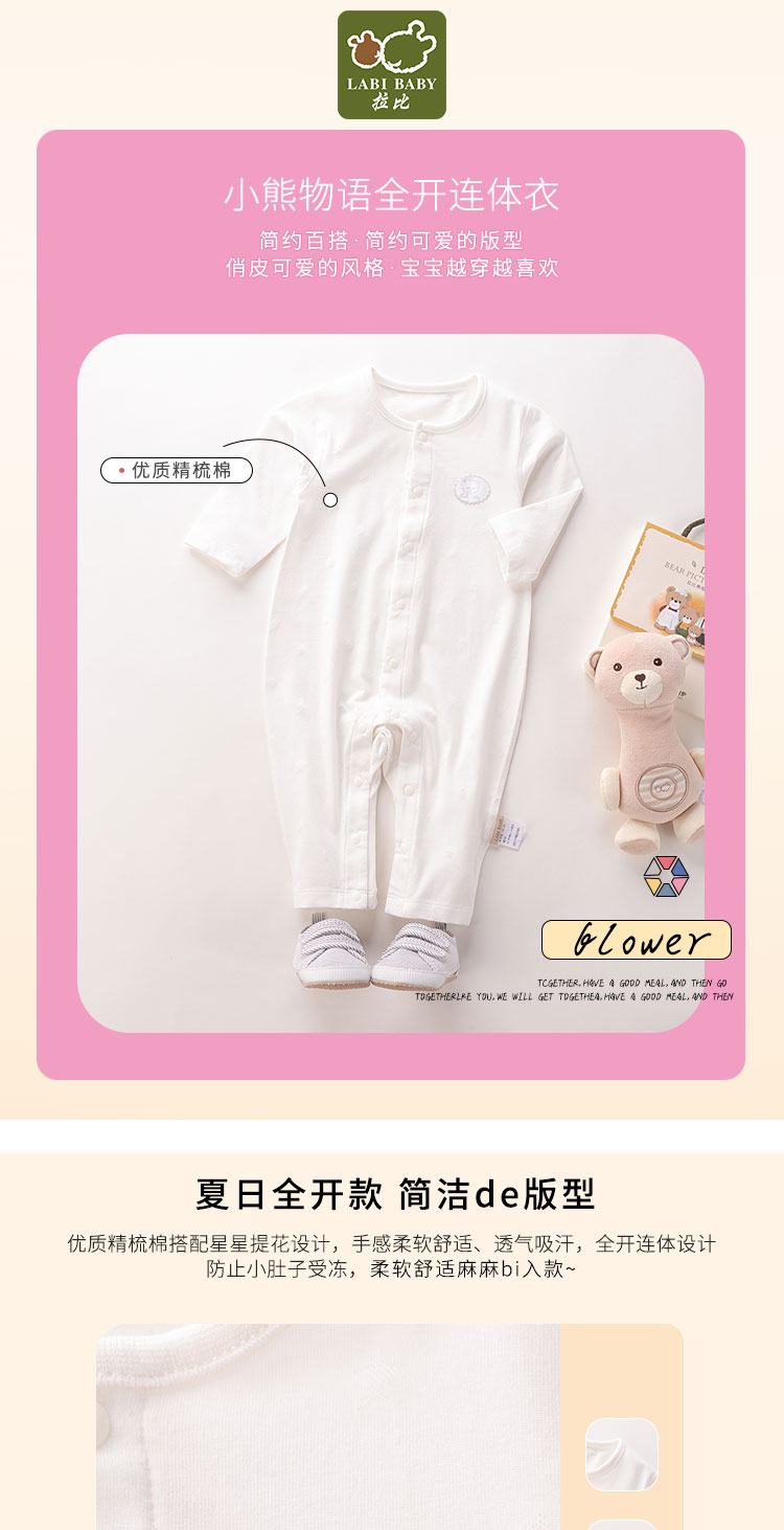 拉比-童衣类(夏)D0小熊物语全开连体衣米白