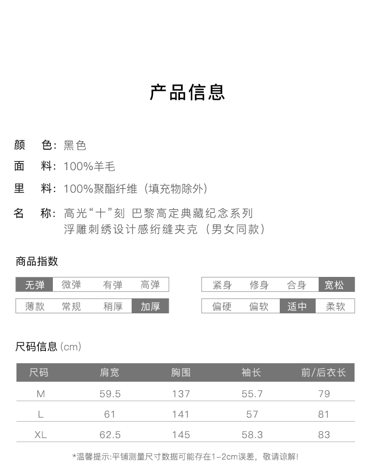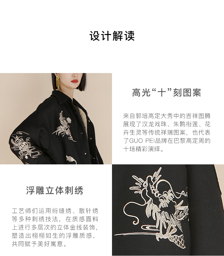 RSG郭培成衣品牌高光十刻国风浮雕设计感潮牌风保暖外套