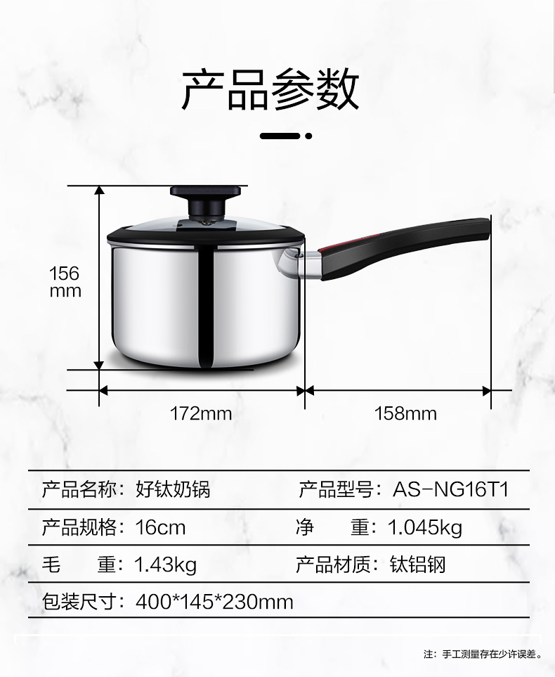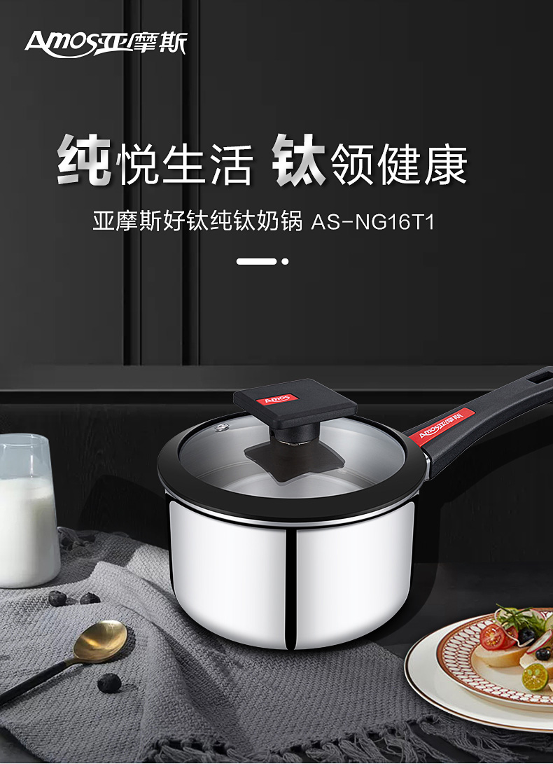 亚摩斯 纯钛奶锅 AS-NG16T1 抑菌抗菌保鲜 健康无涂层 48小时发货