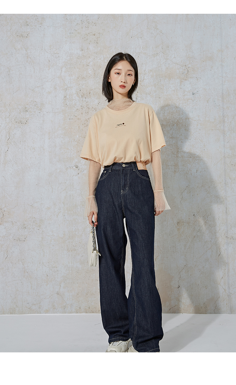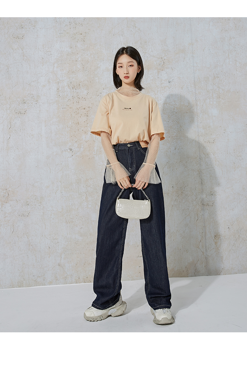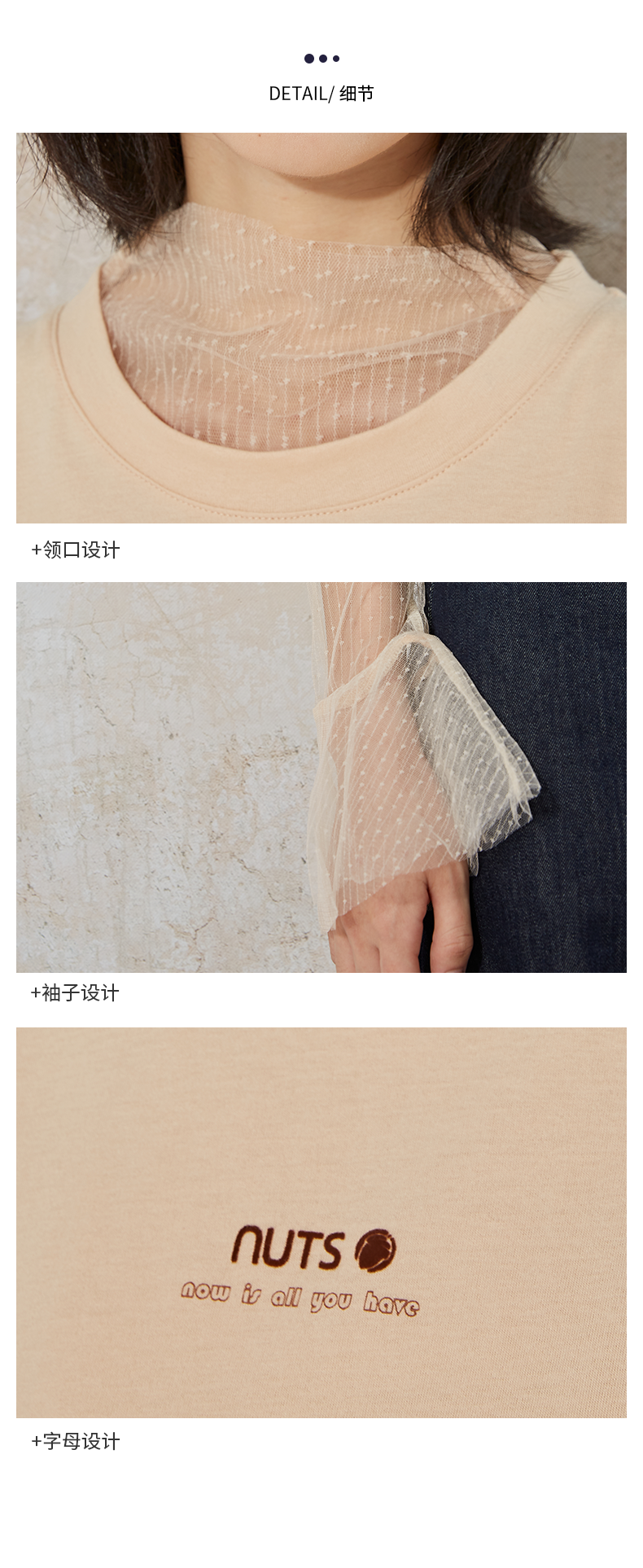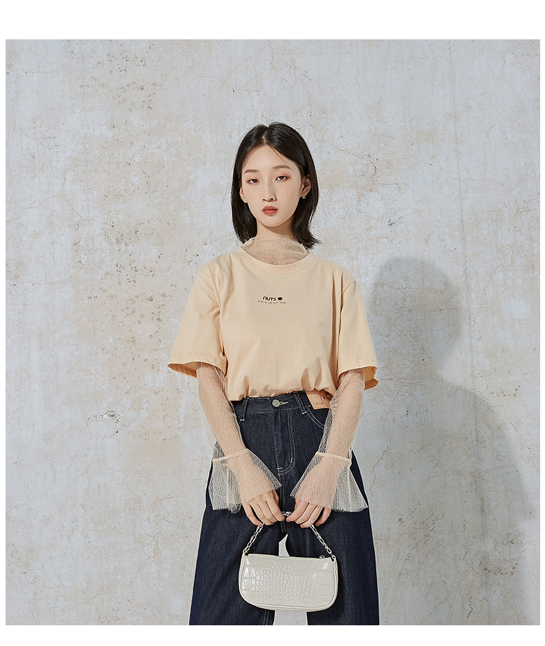 NUTS夏季新款时尚休闲风宽松显瘦长袖T恤女 含内件网纱231023074B